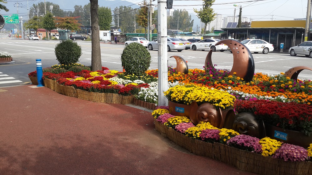 지금 증평군은 꽃으로 화려했던 인삼골 축제를 성공적으로 마치고 그 여운을 이어가기 위해 군청사와 군립도서관 앞마당을 지난 14일부터 국화로 화려하게 단장한 전시회를 열었다.