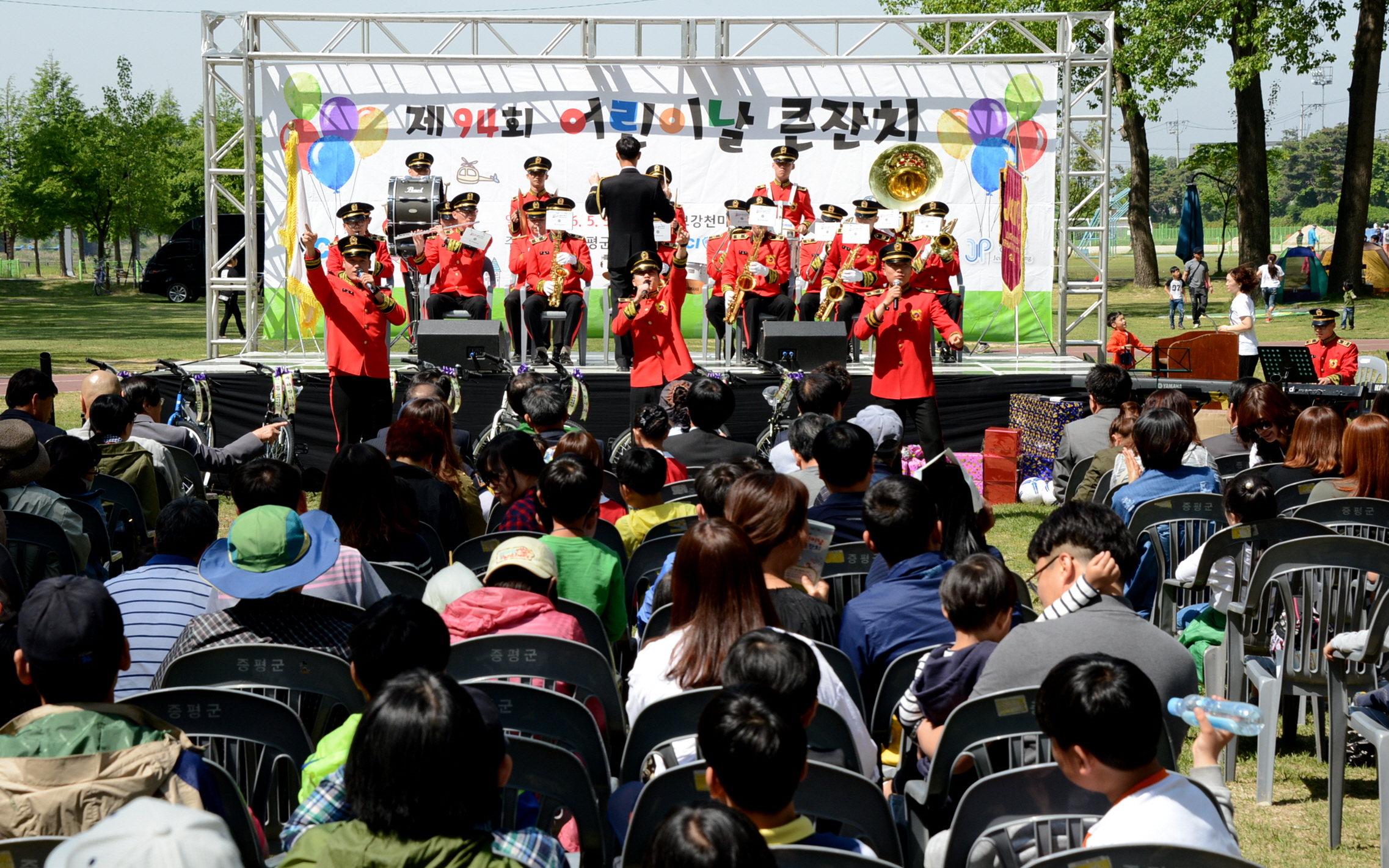 증평군은 5일 제94회 어린이날을 맞이하여 보강천 미루나무숲 일원에서 한별이 합창단과 37사단 군악대 등 축하공연과 유아 태권도 시범, 13공수특전단 특공무술 시범 그리고 물 소화기 쏘기, 점토조형 만들기 등 다양한 체험을 하는 어린이날 행사를 개최했다.[5월3일 보도자료 참조]