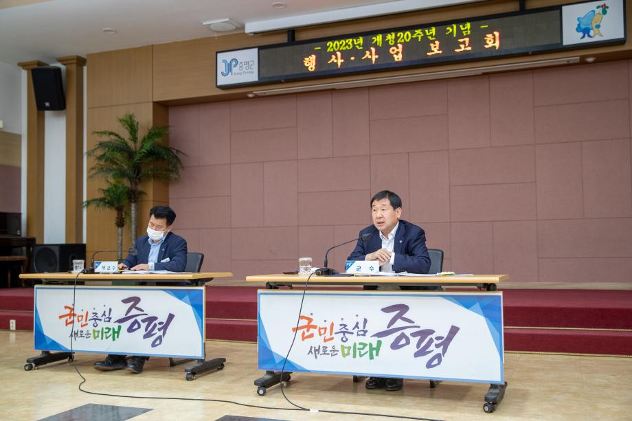 증평군이 21일 군 승격 20주년을 기념하기 위한 2023년 행사·사업 보고회를 개최했다.