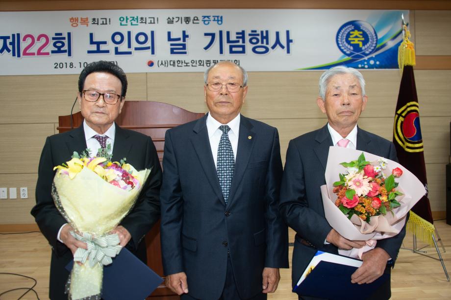 (사)대한노인회증평군지회(회장 연훈흠)가 주관하는 제22회 노인의 날 기념행사가 19일 증평읍 신동리 증평군 노인회관에서 개최됐다.
