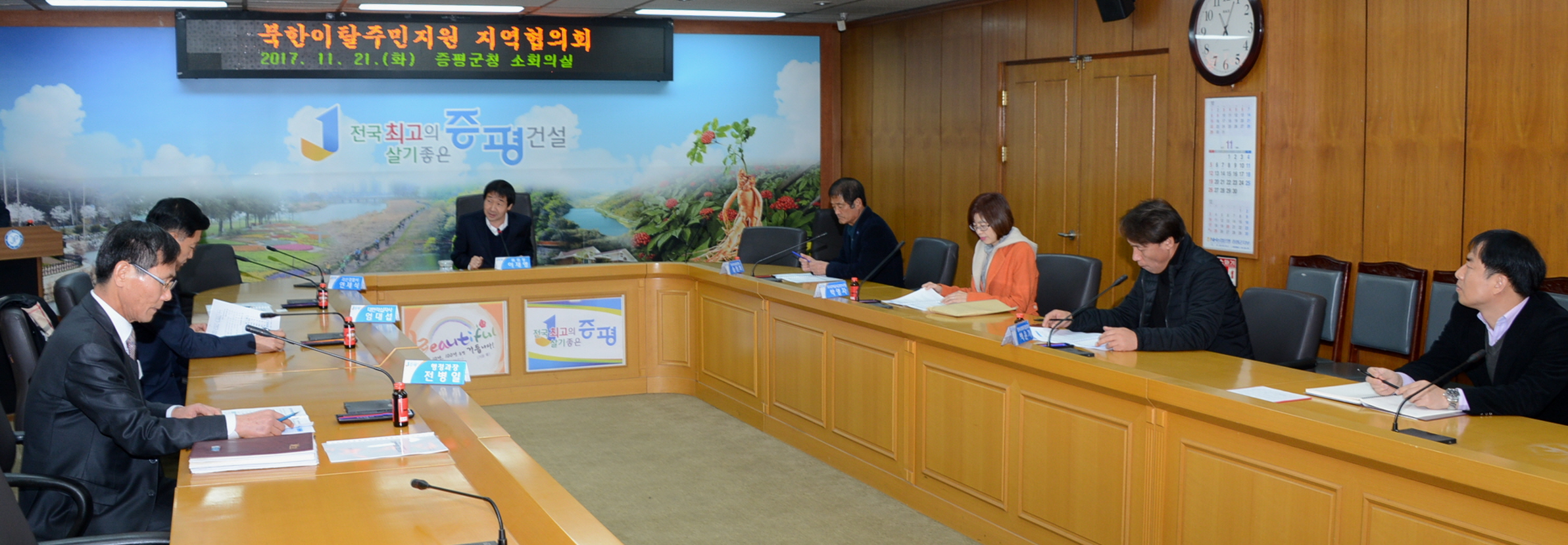 증평군은 21일 군청 소회의실에서 지역 내 북한이탈주민의 지원 방안 모색을 위한 북한이탈주민지원 지역협의회(위원장 이재영 증평부군수)를 개최했다.(보도자료실 참조)