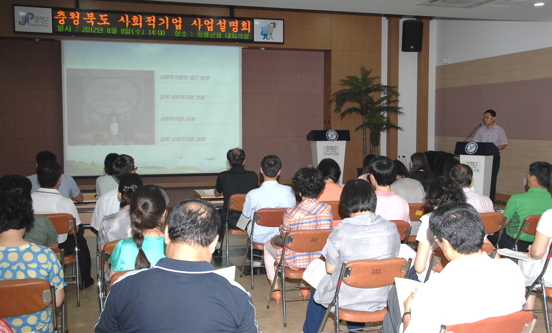 증평군은 8일 오후 2시 군청 대회의실에서 사회적기업공모 사업설명회를 개최했다. [보도자료실 참조]