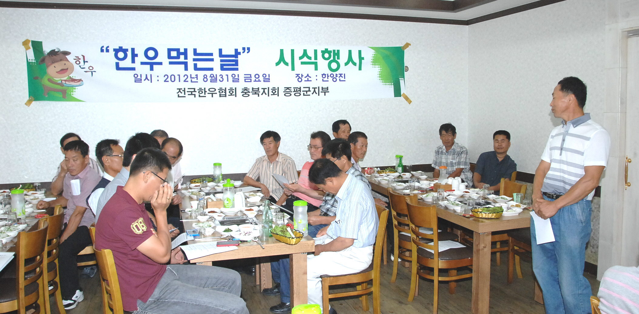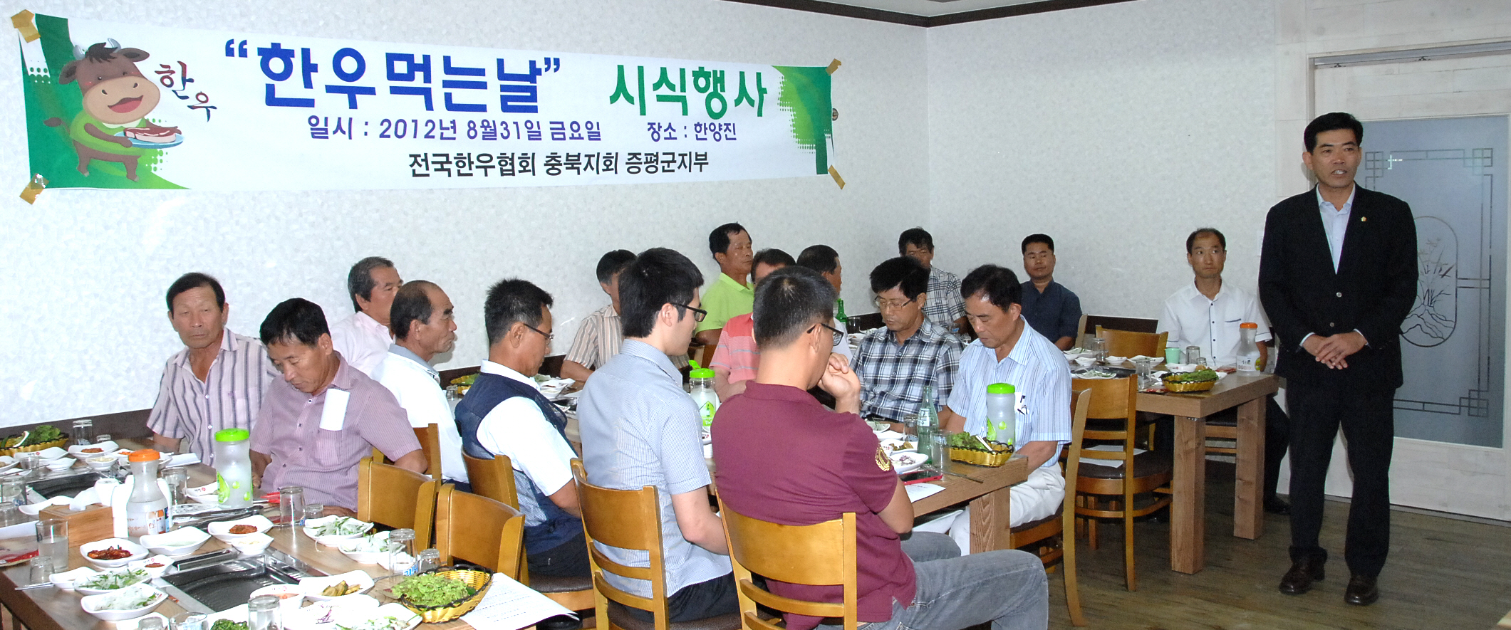 증평군 한우협회에서는 31일 지역 내 한 식당에서 한우를 사육하고 있는 농민 100여명이 참석한 가운데 한우산업발전을 위해 힘을 모으기로 하는 박석규 군의회 의장 등을 초청해 한우소비촉진에 힘써달라고 호소했다.[보도자료실 참조]