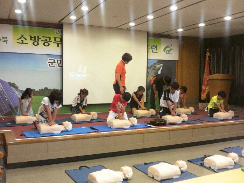 증평군 드림스타트센터는 1일 증평소방서에서 학령기 아동 30명을 대상으로 응급처치교육을 실시했다. [증평보도자료실 참조]