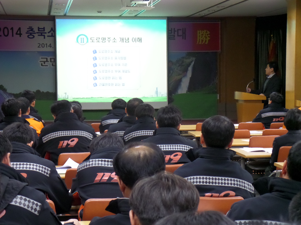증평군(군수 홍성열)이 6일 증평소방서(서장 이대원) 소방대원 108명을 대상으로 도로명주소 교육을 실시했다. [증평보도자료실 참조]
