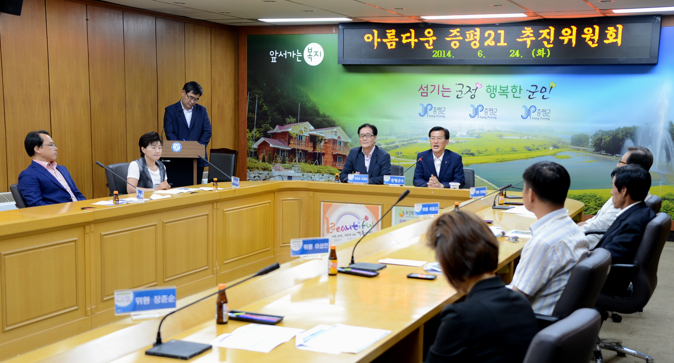 증평군은 저탄소 녹색성장의 지속가능한 발전을 위해 24일 군청 소회의실에서 아름다운 증평21 추진위원회 회의를 개최했다. [보도자료실 참조]