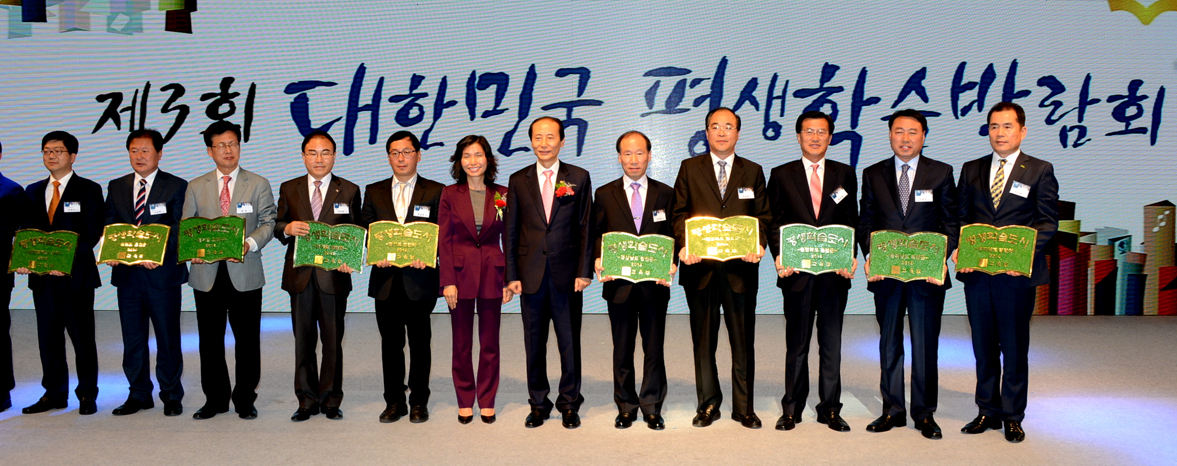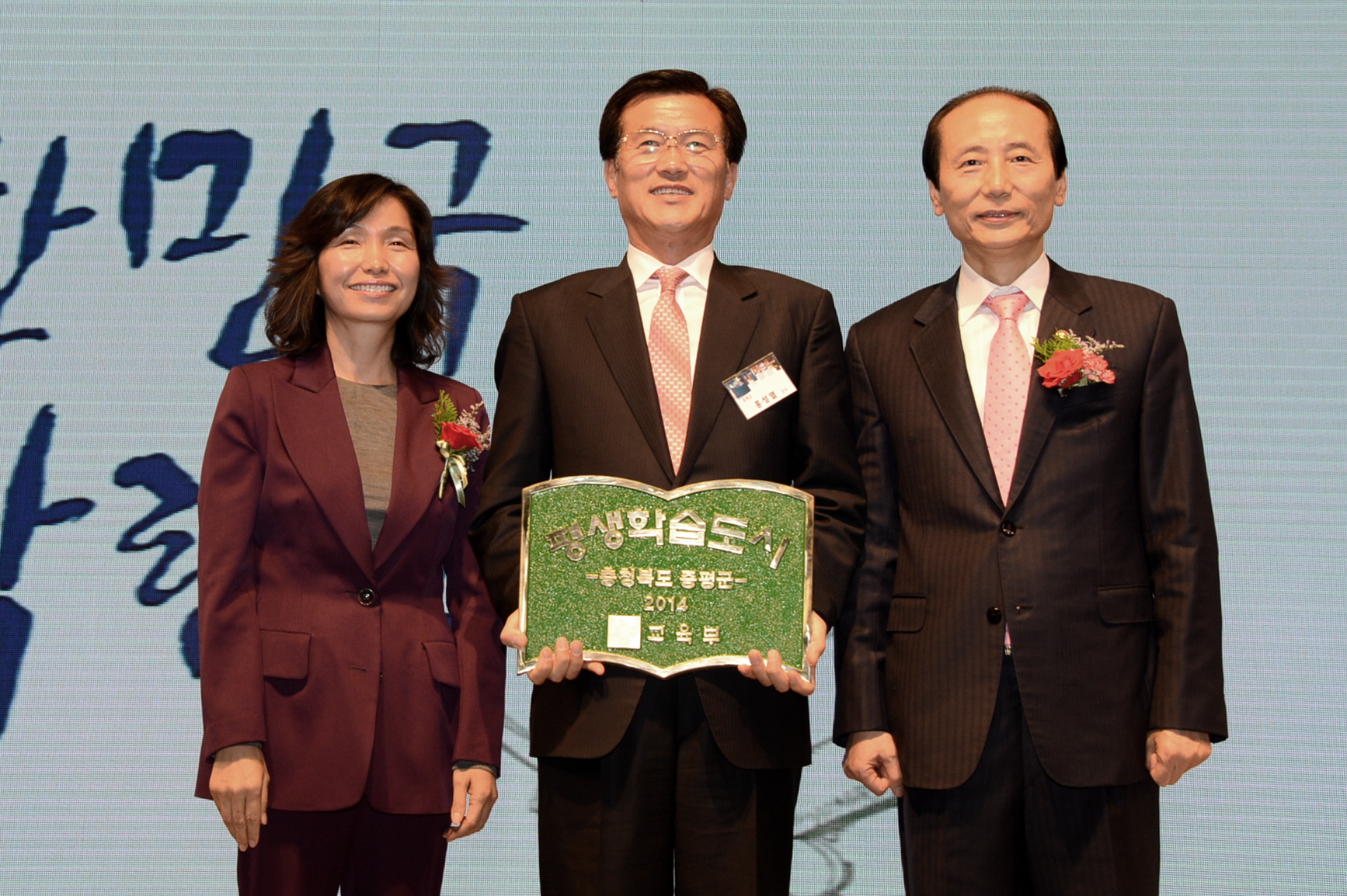 증평군(군수 홍성열)이 17일 교육부와 국가평생교육진흥원이 주관한‘제3회 대한민국 평생학습 박람회’에서 평생학습도시 지정서 및 동판을 전달 받았다. [보도자료실 참조]