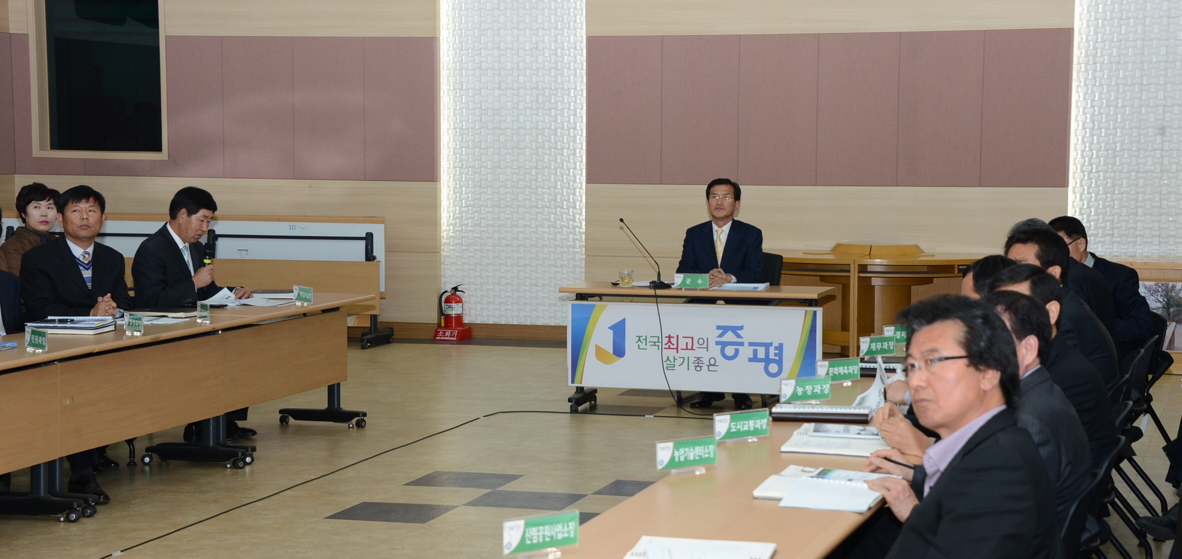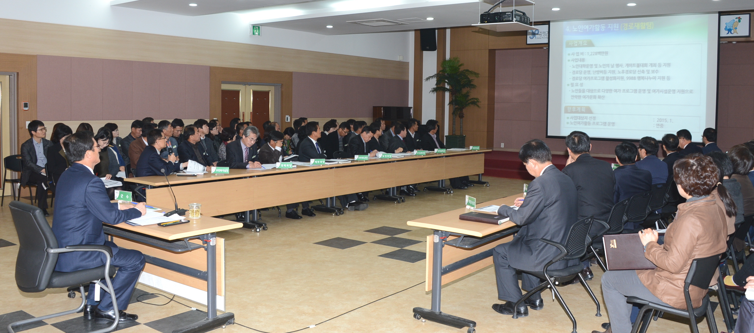 증평군은 5일 군청 회의실에서 홍성열 군수를 비롯한 실과소장 및 팀장 등 80여명이 참석한 가운데 전국 최고의 살기좋은 증평 실현을 위한 "2015년도 주요업무계획 보고회"를 개최했다. [보도자료실 참조]
