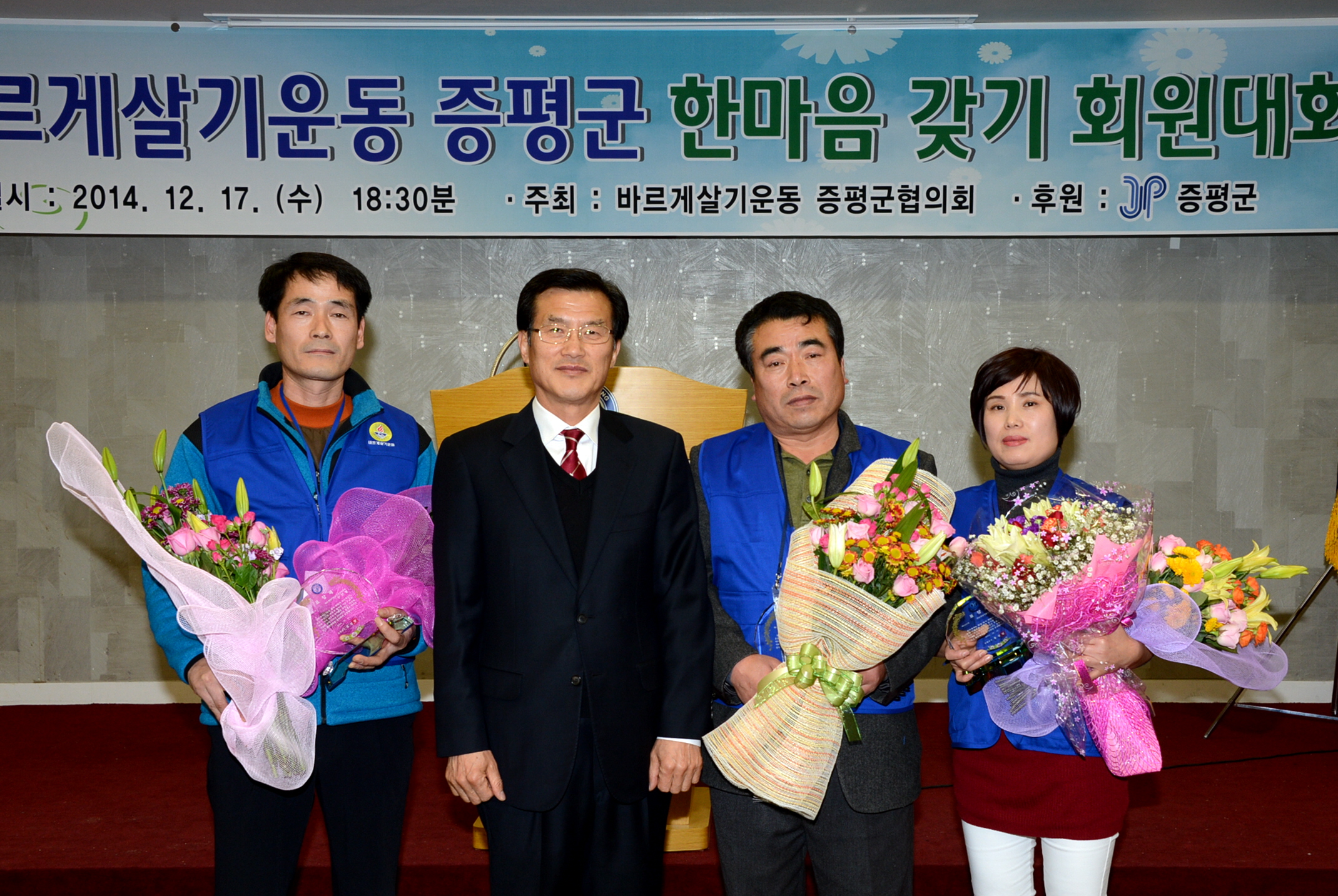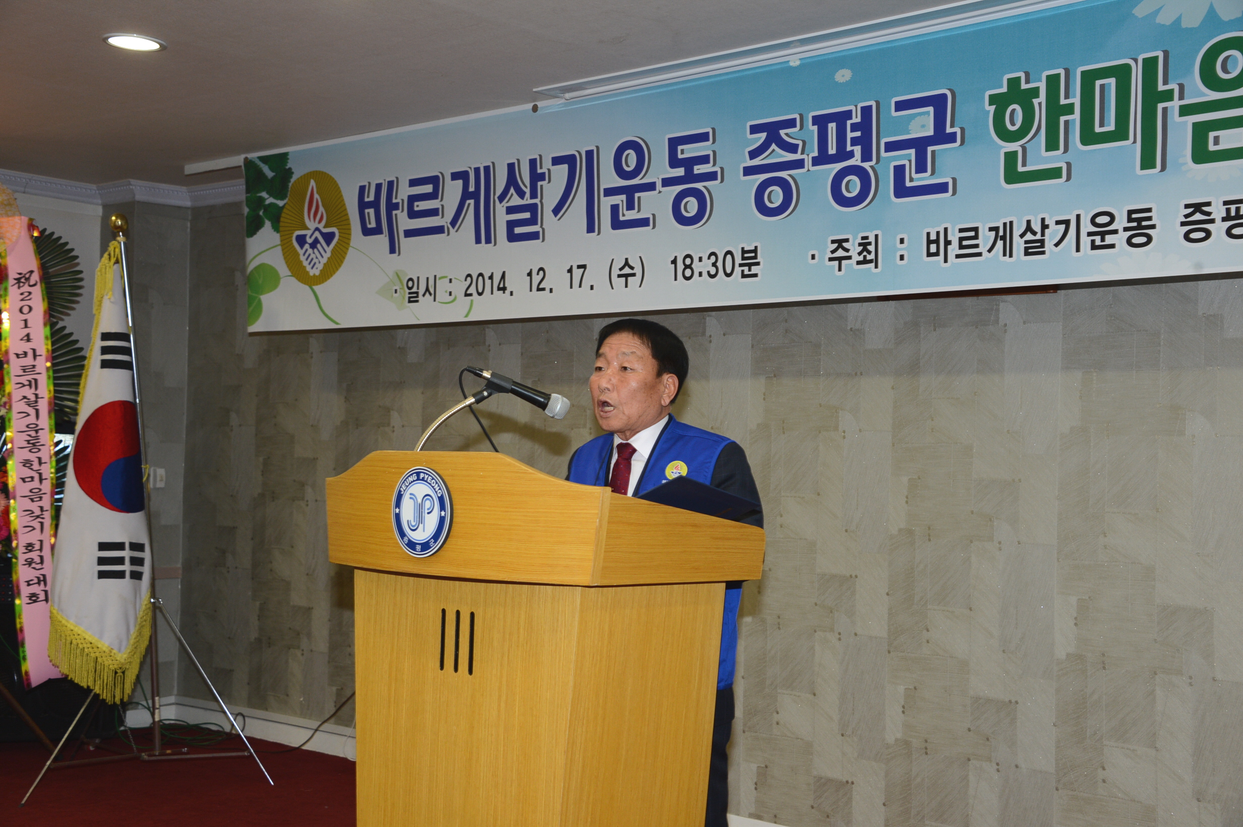바르게살기운동증평군협의회(회장 김규환)는 지난 17일 오후 6시 증평군여성회관에서 회원 등 100여명이 참석한 가운데 ‘2014 바르게살기운동 한마음갖기 회원대회’를 개최했다. [보도자료실 참조]