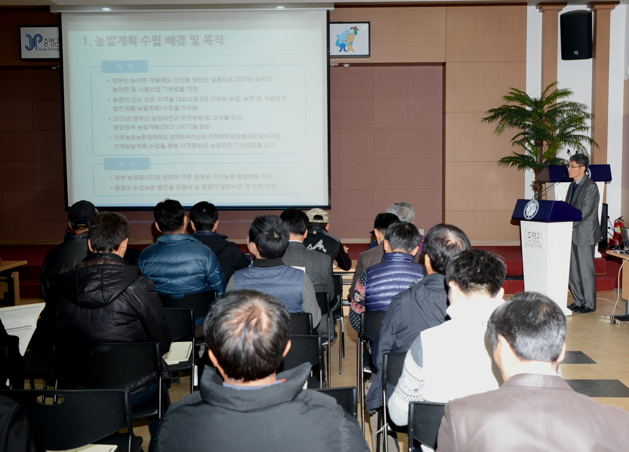증평군은 22일 오후 2시 군청 대회의실에서 주민 100여명이 참여한 가운데 증평군 농업․농촌 및 식품산업발전계획 수립 공청회를 가졌다. [보도자료실 참조]