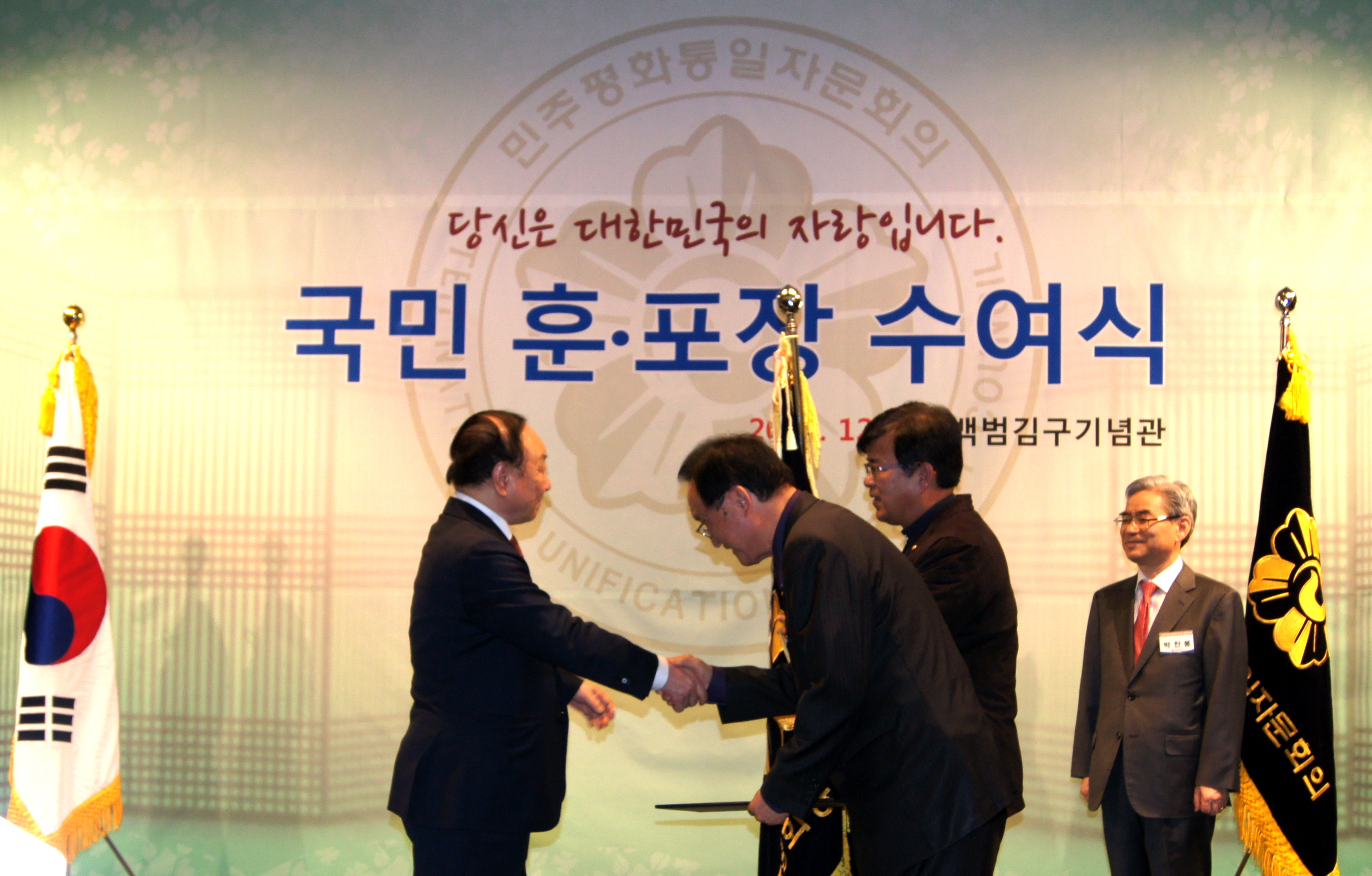 민주평통 증평군협의회(회장 김장응)가 19일 서울 백범김구기념관에서 개최된 ‘2014년도 유공 자문위원 국민훈·포상 수여식’에서 평화통일에 기여한 공로를 인정받아 모범협의회 부문에서 대통령상을 수상했다.[19일 보도자료 참조]