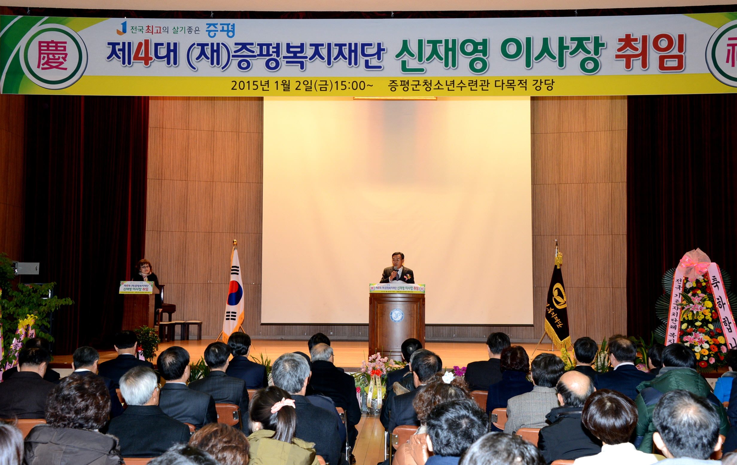 2일 오후 3시 증평군청소년수련관 다목적 강당에서 신재영(66)씨가 제4대 증평복지재단 이사장에 취임했다. [보도자료실 참조]