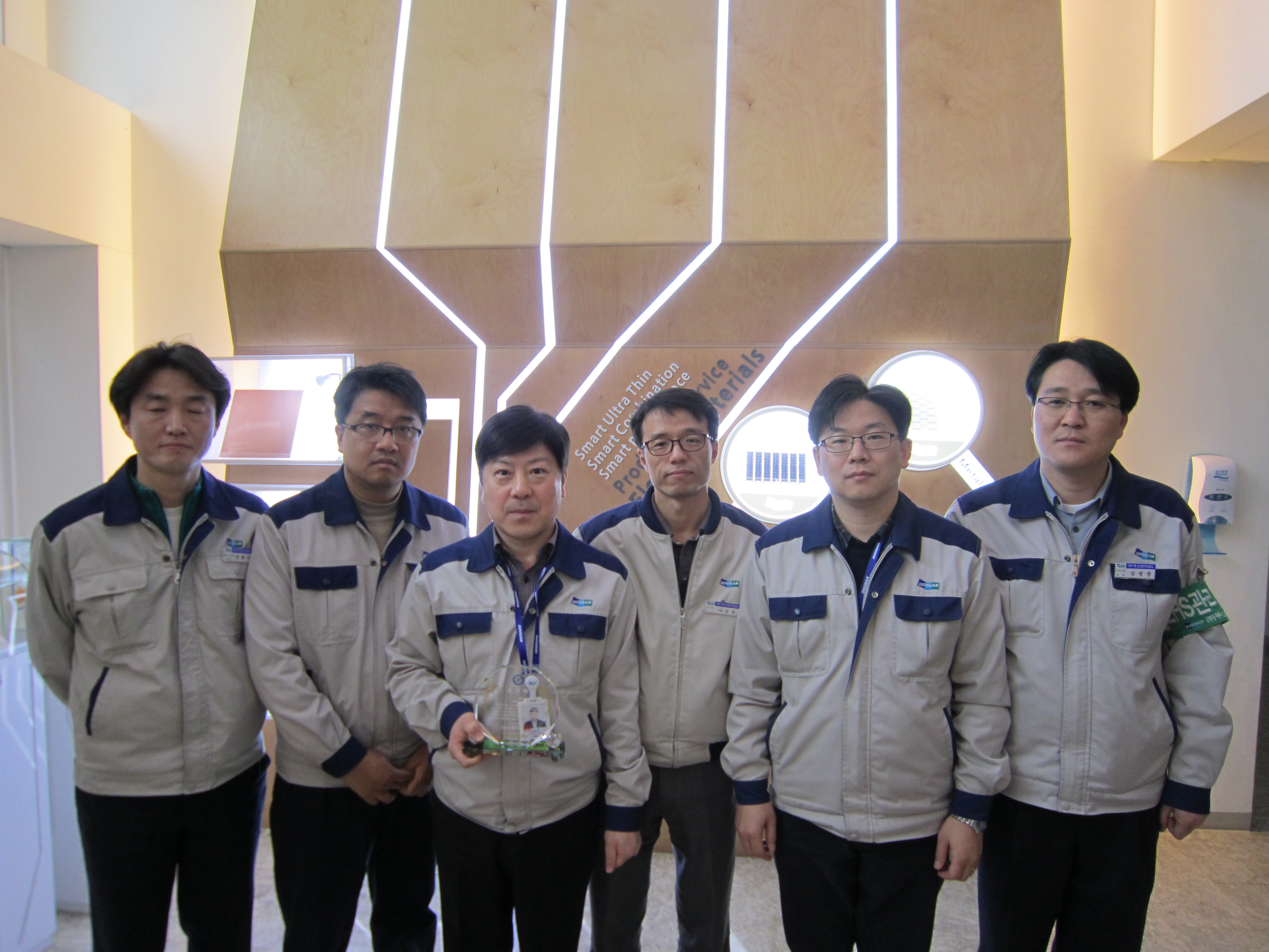 두산전자 증평공장이 4일 지역사회에 따뜻한 복지를 지속적으로 실천해 증평군으로부터 감사패를 전달받았다. [증평보도자료실 참조]