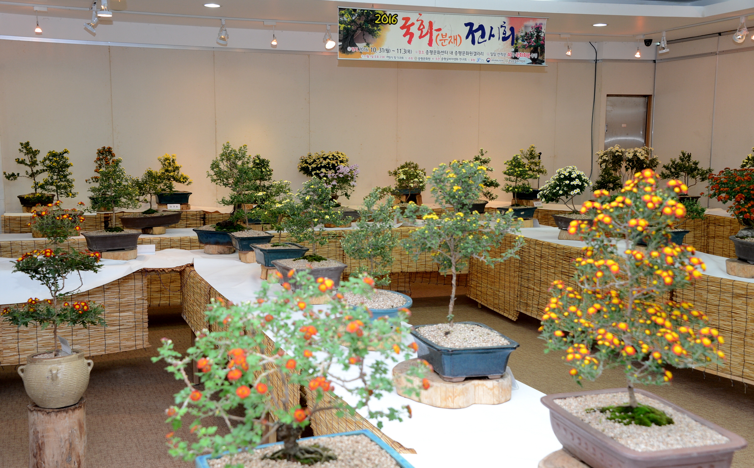 증평문화원 실버야생화연구회에서 지난 1년 간 정성을 다해 키운 분재 국화 150여점의 국화 작품 전시회가 3일까지 4일간 증평문화센터 1층 갤러리에서 열린다.