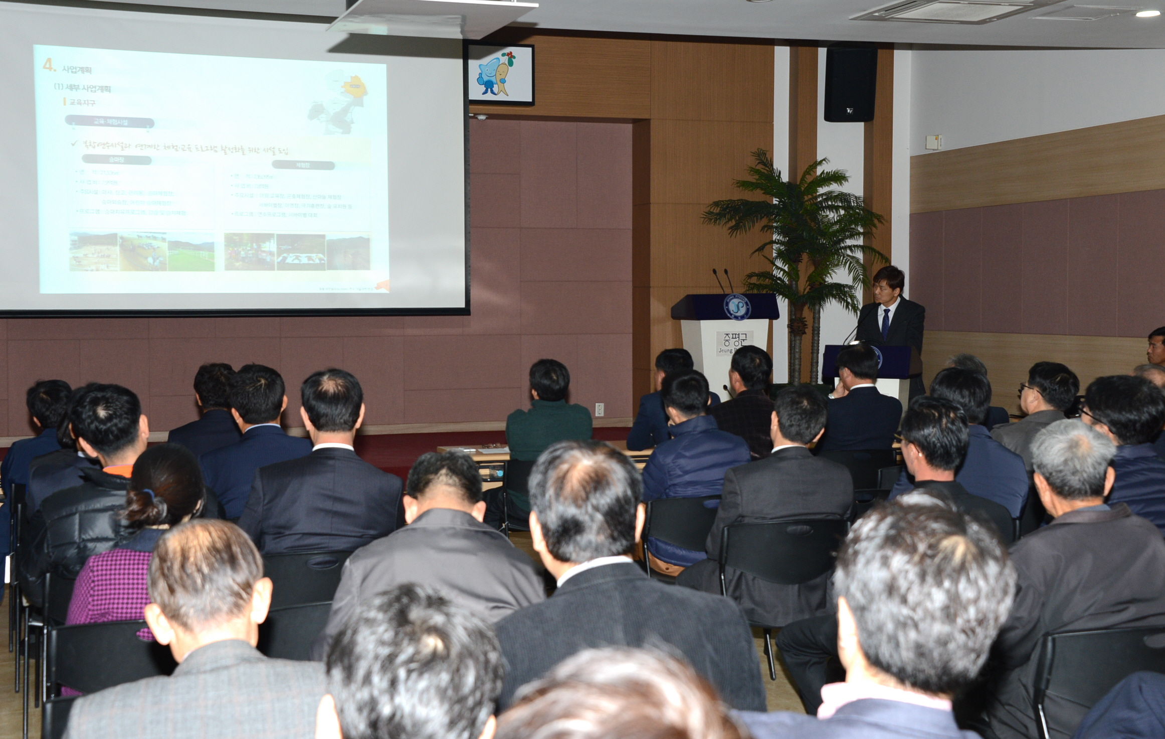 증평군은 18일 군청대회의실에서 지역주민 및 관계전문가 등 100여명이 참석한 가운데 증평에듀팜특구 개발계획 변경(안)공청회를 개최했다.(보도자료실 참조)