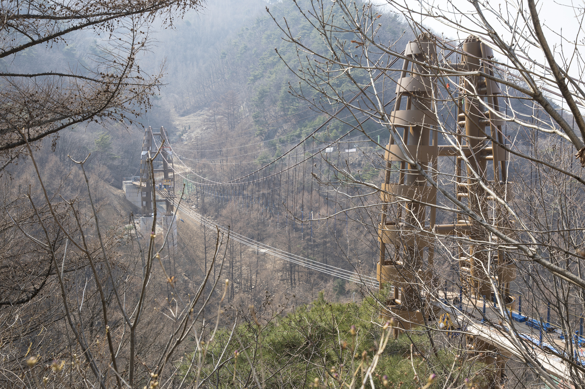 증평 좌구산 휴양랜드 현수교 웅장한 자태 드러내