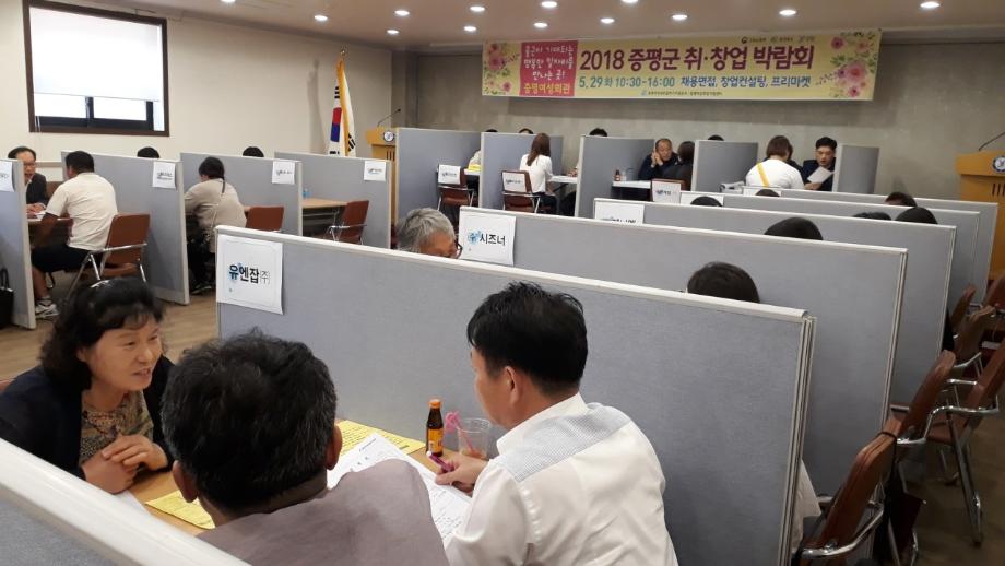 증평군은 지난 29일 증평읍 장동리 증평군여성회관에서 지역 내 고용활성화와 구인난을 겪고 있는 지역 업체와 구직자(창업희망자 포함)를 대상으로 실시한‘2018년 증평군 취업‧창업 박람회’를 성료했다고 밝혔다.