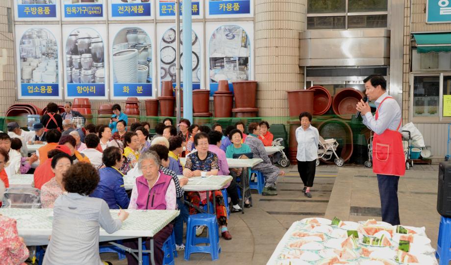 증평새마을금고봉사단(이사장 엄대섭, 단장 김병목)은 가정의 달을 맞아 18일 증평장뜰시장 다목적 광장에서 독거노인 및 어르신 400여명에게 삼계탕을 대접하는‘효(孝)사랑 점심 나누기’봉사 활동을 펼쳤다.(보도자료실 참조)