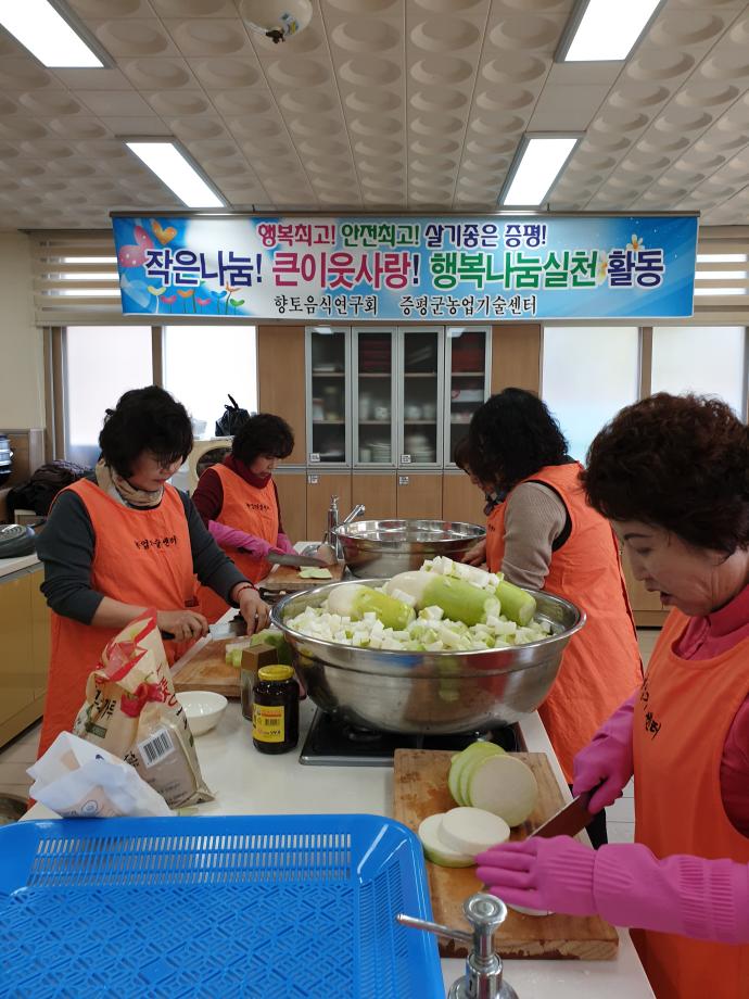 생활개선증평군연합회 향토음식연구회(회장 고향수)는 22일 행복나눔실천활동의 일환으로 회원들이 직접 마련하고 담근 김치 80kg을 사회복지시설 4개소에 나눠주었다.