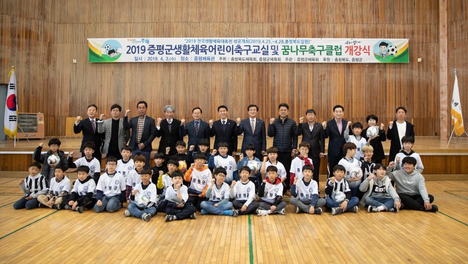 증평군체육회(회장 홍성열 증평군수)는 3일 증평읍 증평리 증평실내체육관에서 2019 증평군어린이축구교실 및 꿈나무축구클럽 개강식을 열었다.