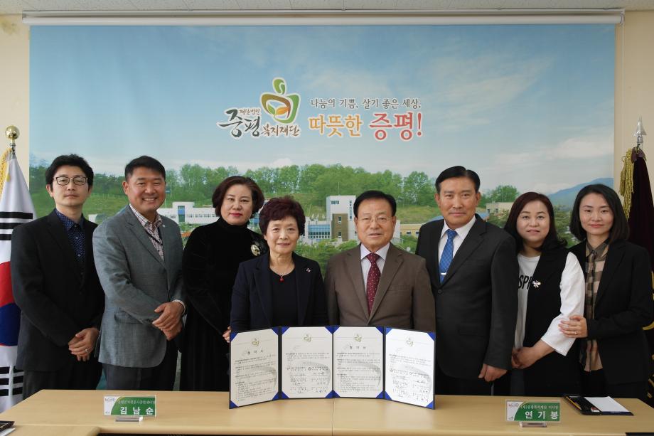 (재)증평복지재단(이사장 연기봉)과 증평군자원봉사종합센터(센터장 김남순)는 18일 증평복지재단 회의실에서 지역사회복지 및 자원봉사 인프라 구축을 위한 상생발전 업무협약을 체결했다.