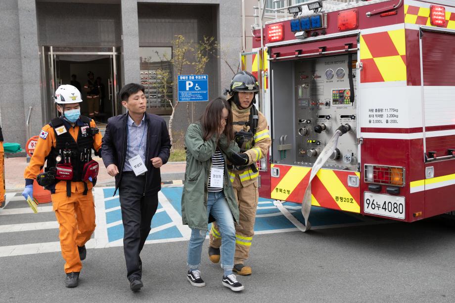 증평군이 지난 18일 증평읍 송산리 송산LH 3단지 천년나무아파트에서 대형화재 재난대응 훈련을 실시했다.