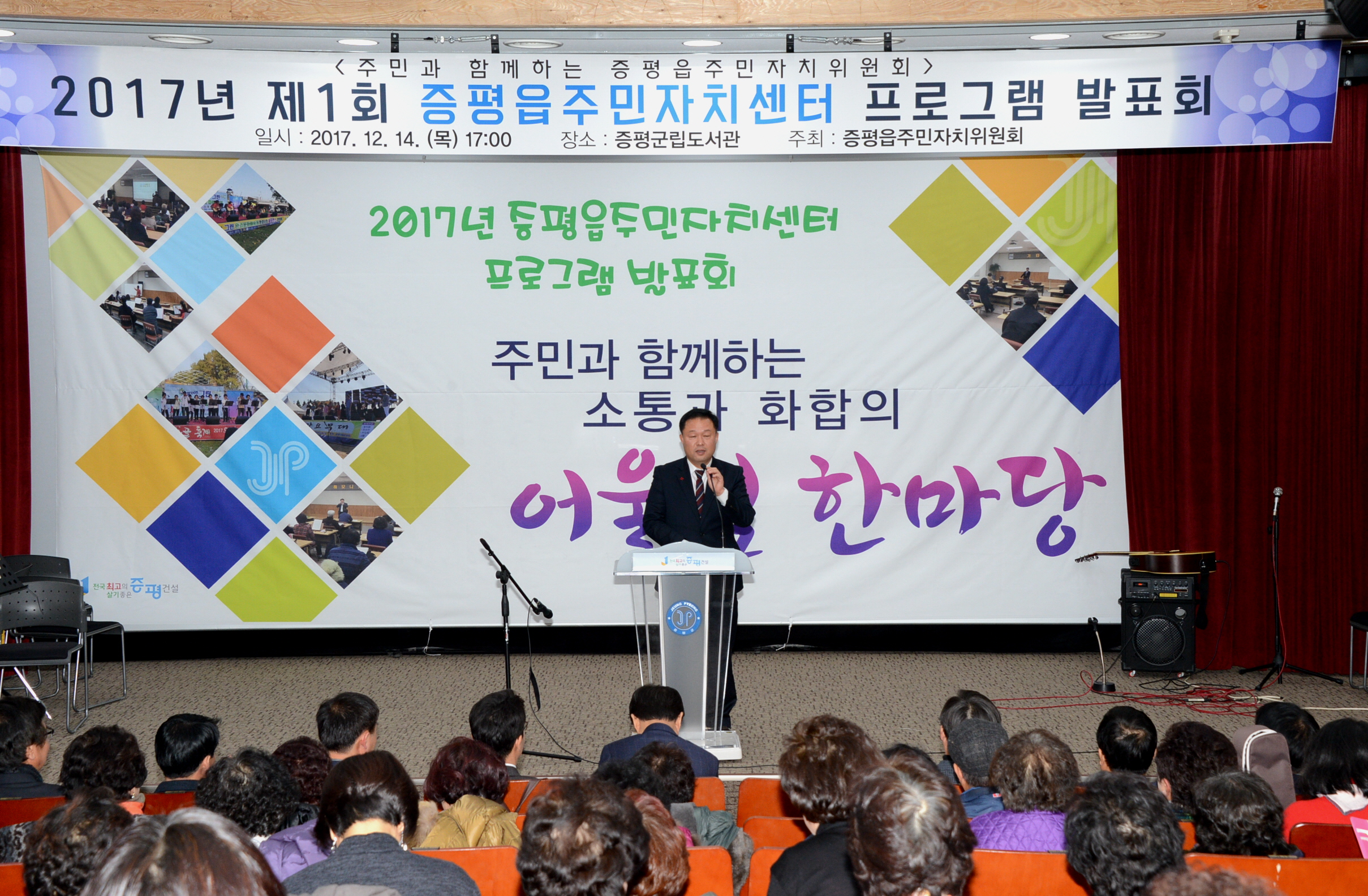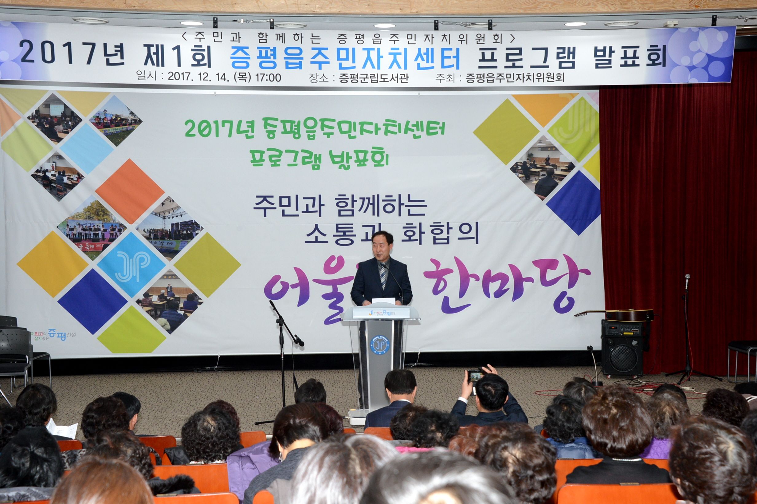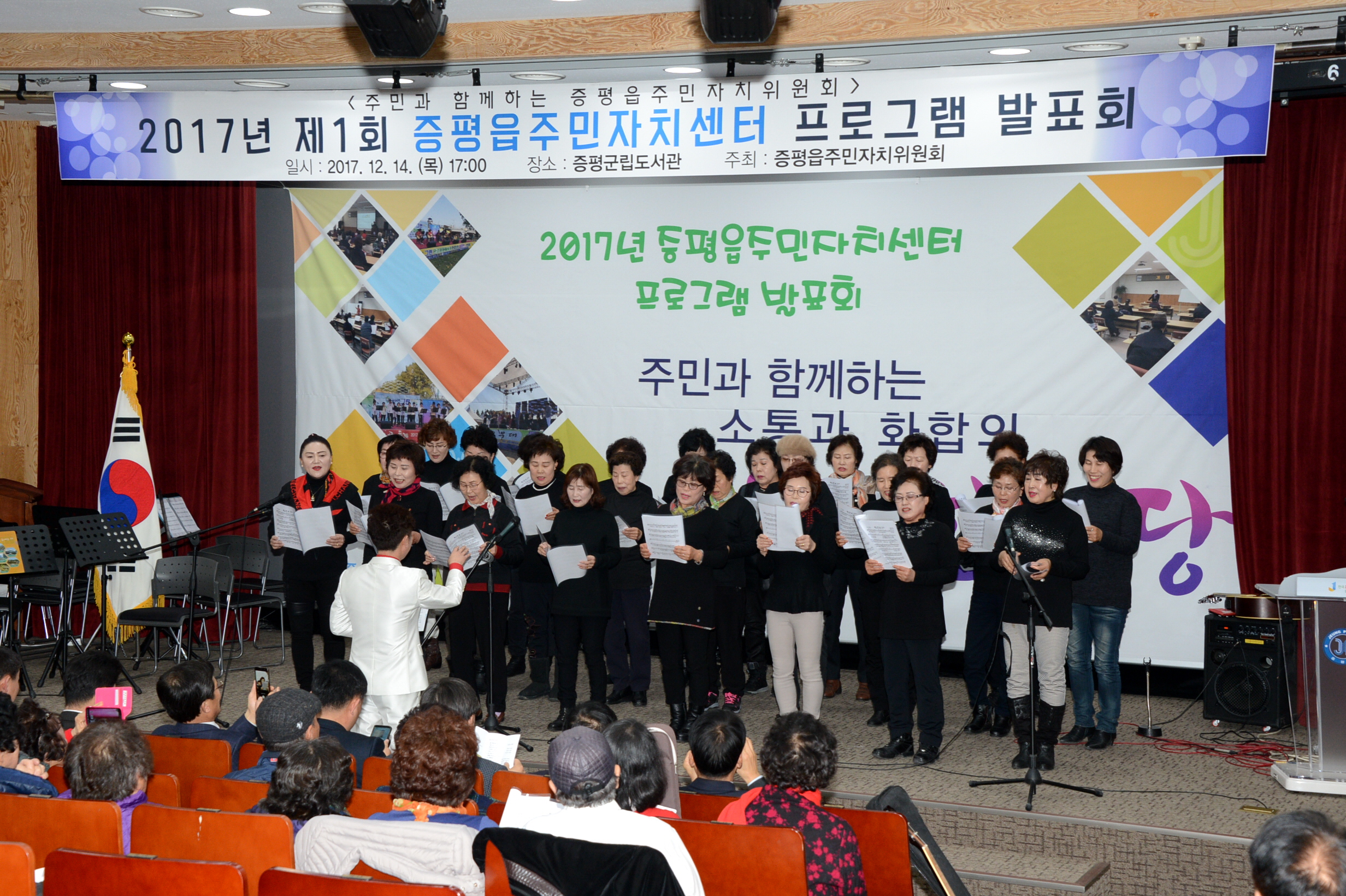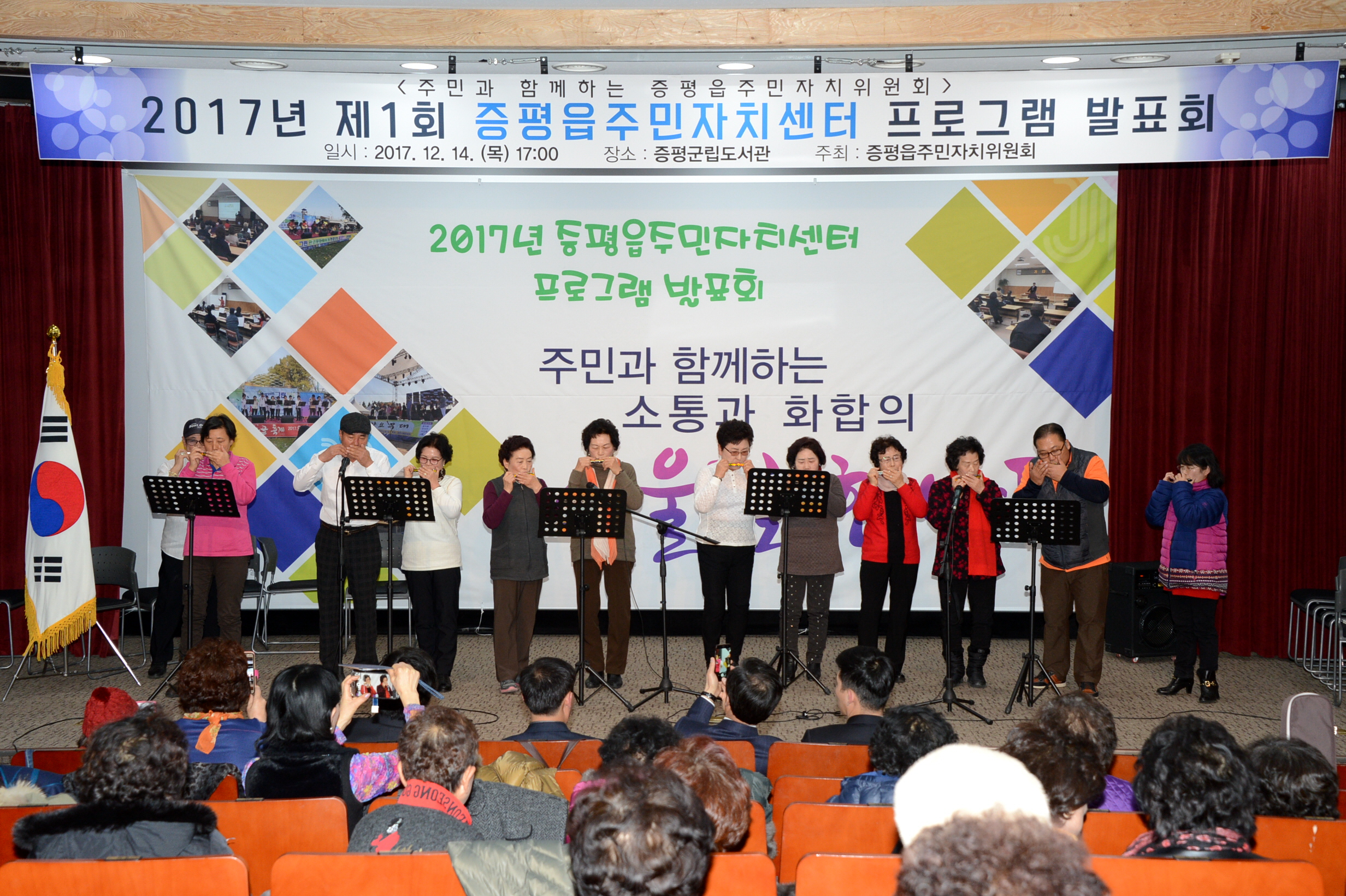 증평읍주민자치위원회(위원장 연주봉)는 14일 증평군립도서관 다목적홀에서 2017년 증평읍 주민자치프로그램 발표회를 개최했다.(ㅂ도잘실 참조)