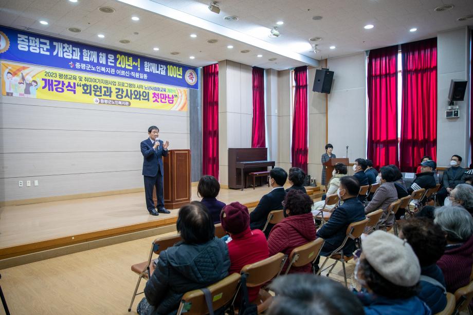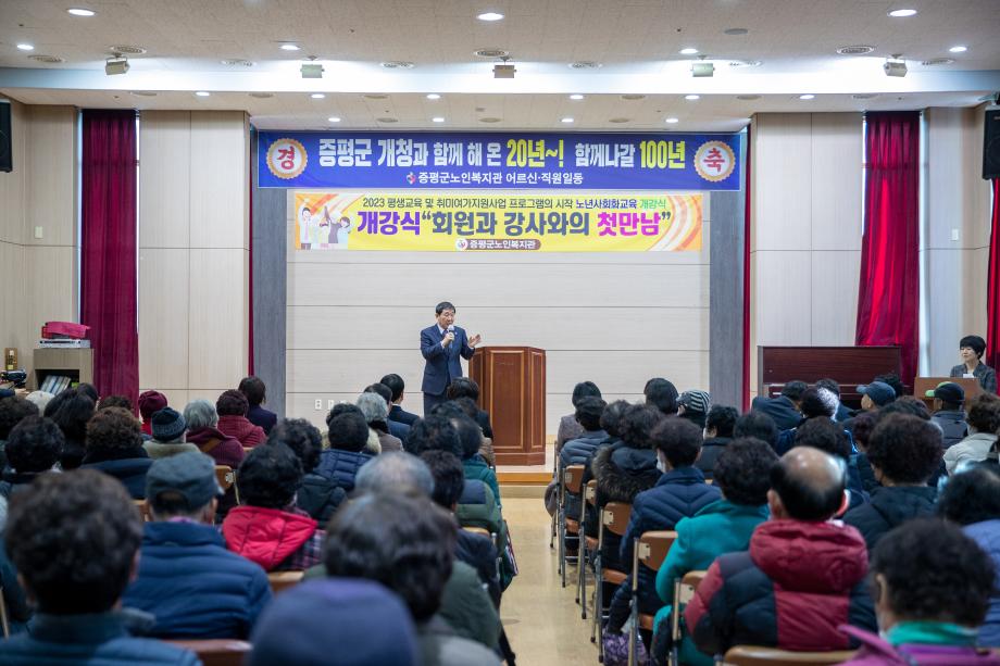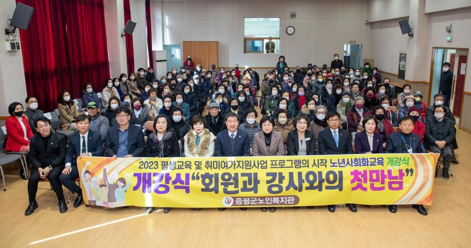 증평군노인복지관은 지난 2일 노인복지관 다목적홀에서 ‘2023년 노년사회화교육 개강식’을 개최했다.