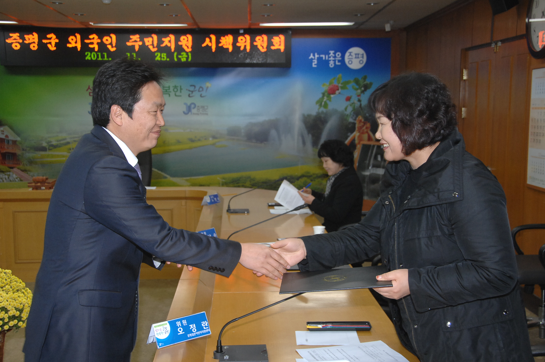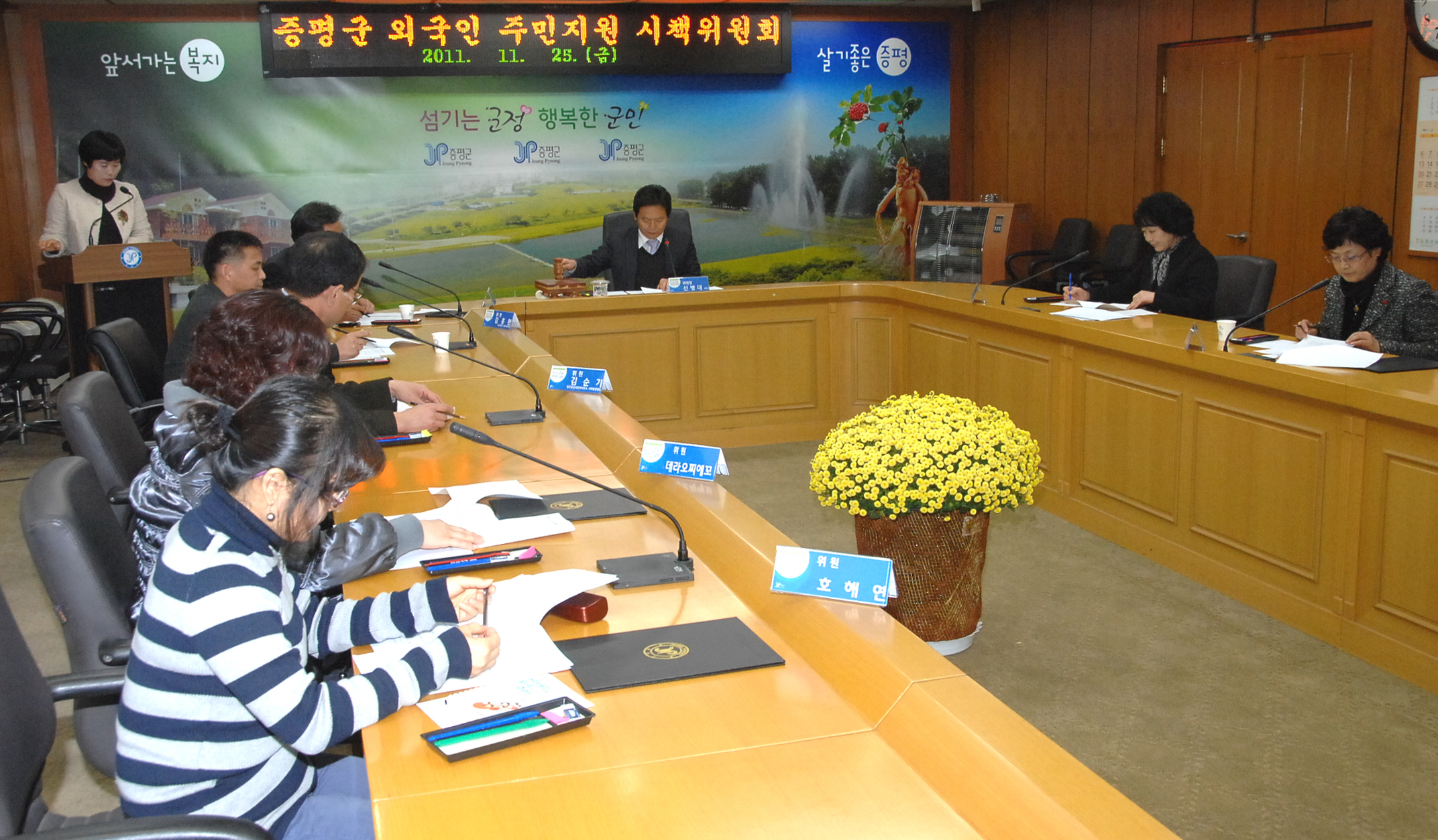 증평군은 25일 군청 소회의실에서 2012년 외국인주민 지원 사업계획을 심의하기 위해 ‘증평군외국인주민지원시책위원회’를 개최했다.[보도자료실 참조]