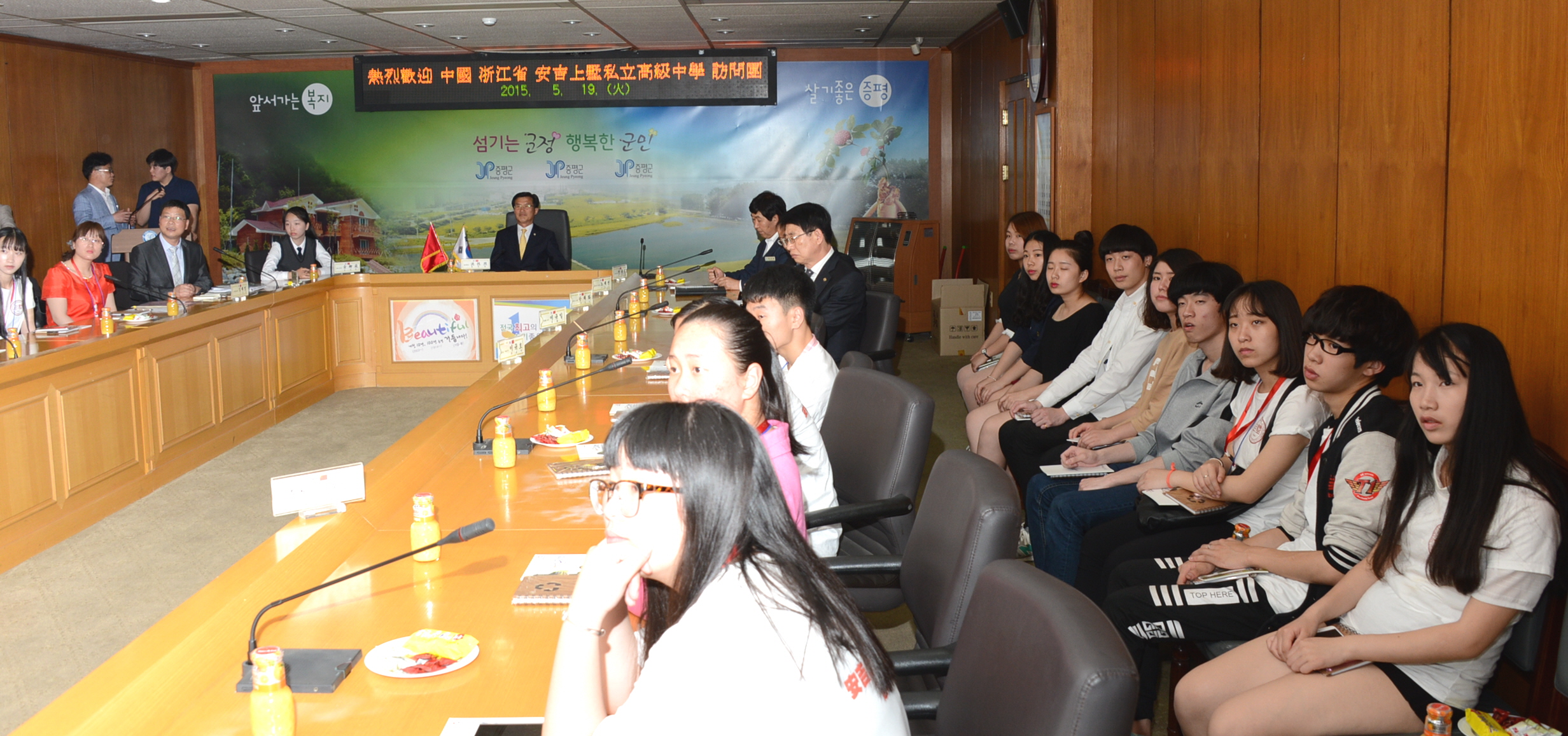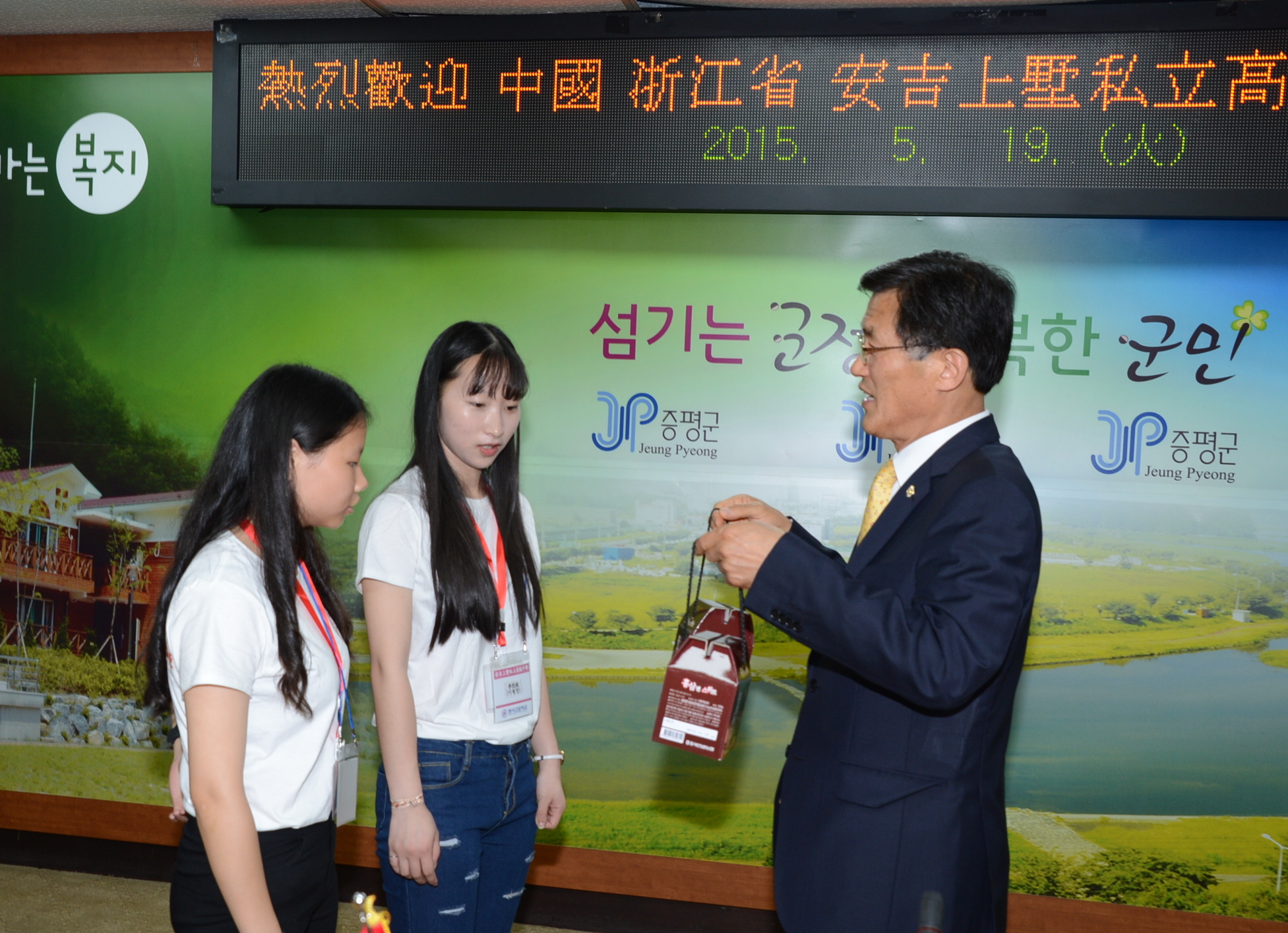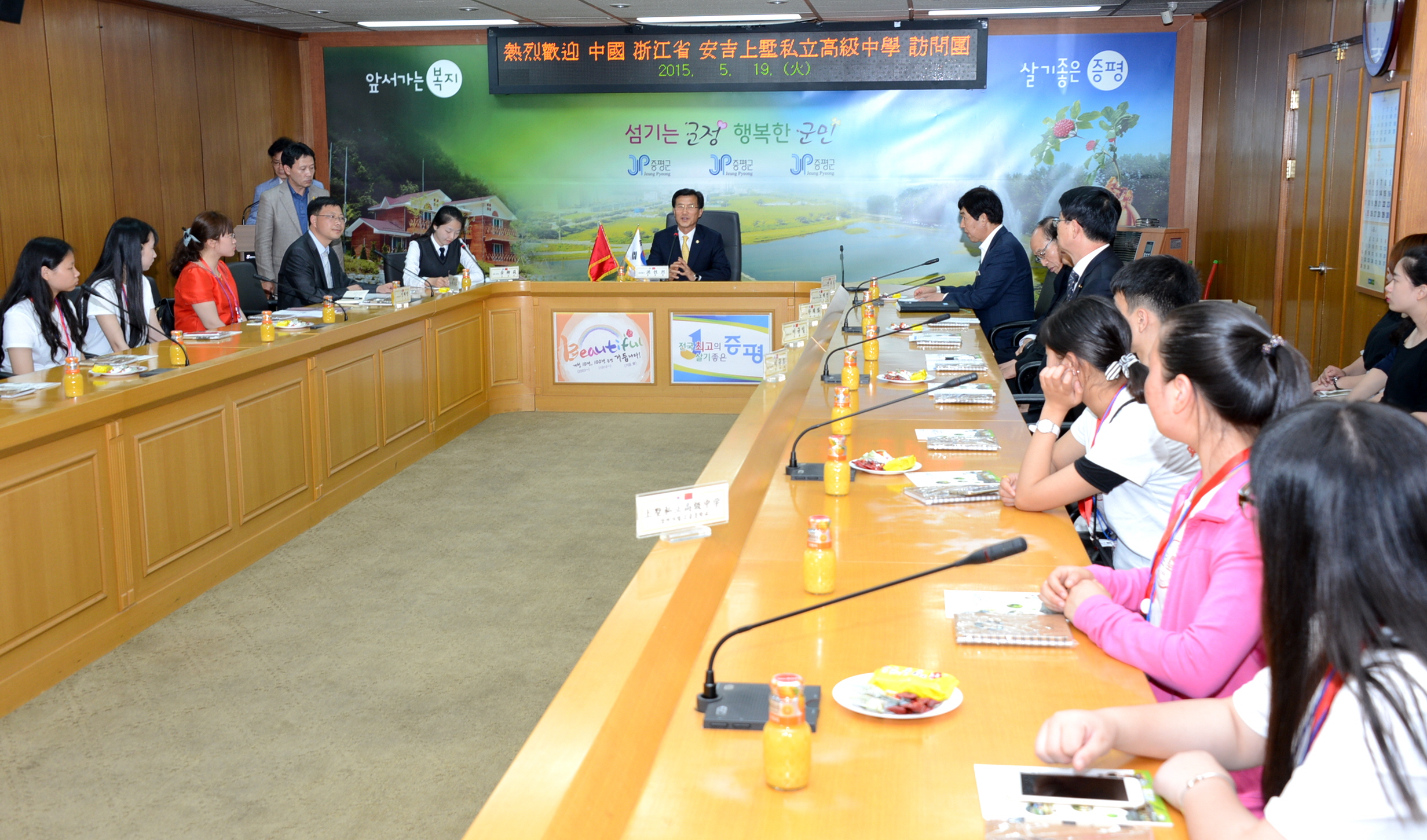 중국 저장(浙江)성 안지상서(安吉上墅) 사립고급중학교 학생과 교사들이 자매결연학교인 증평 형석고등학교(교장 한채화)및 증평군을 19일 방문했다. [보도자료실 참조]