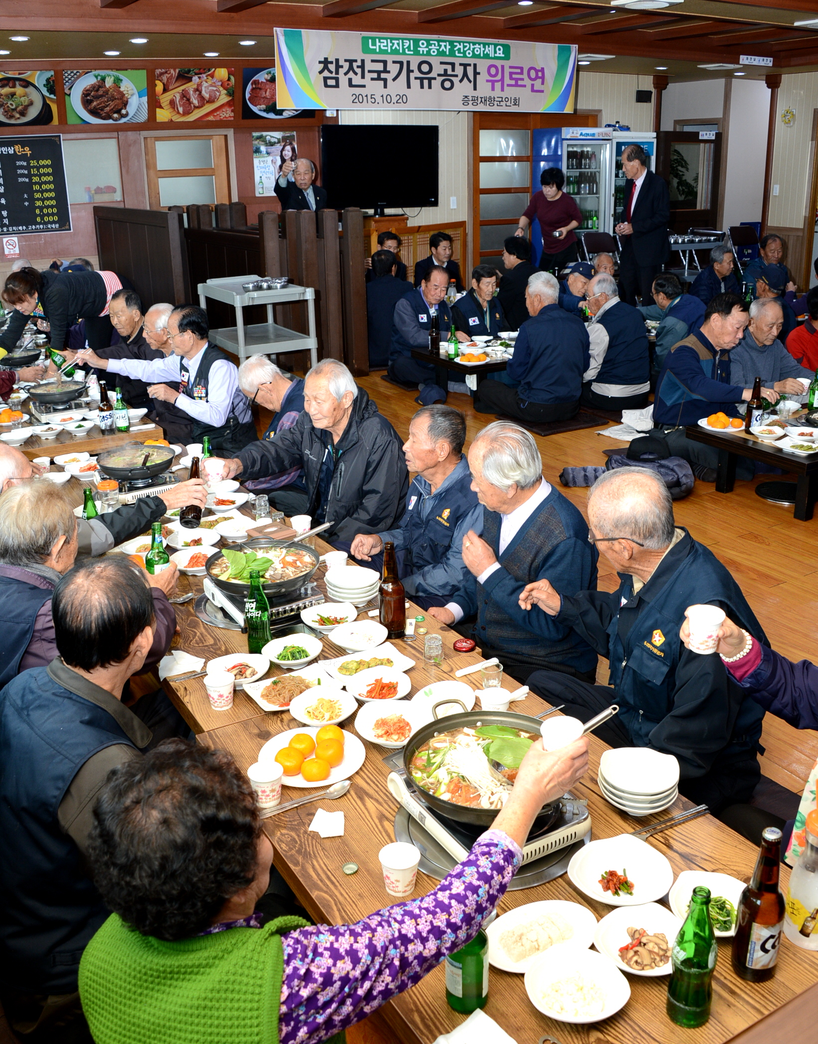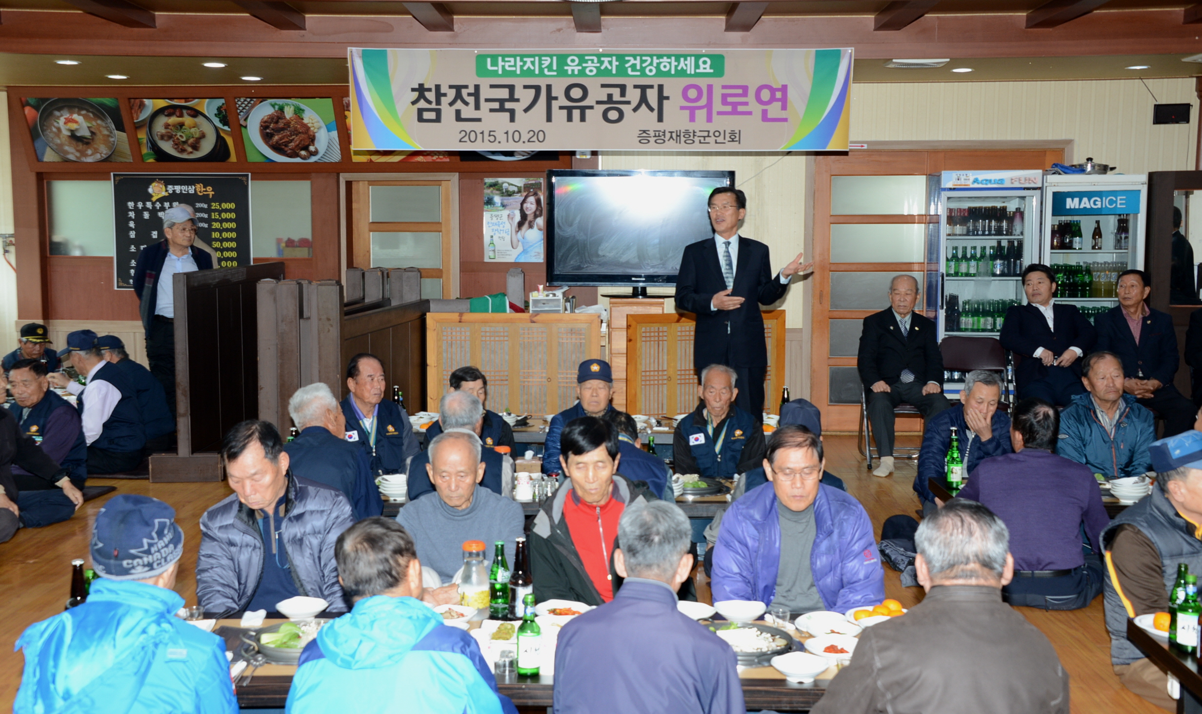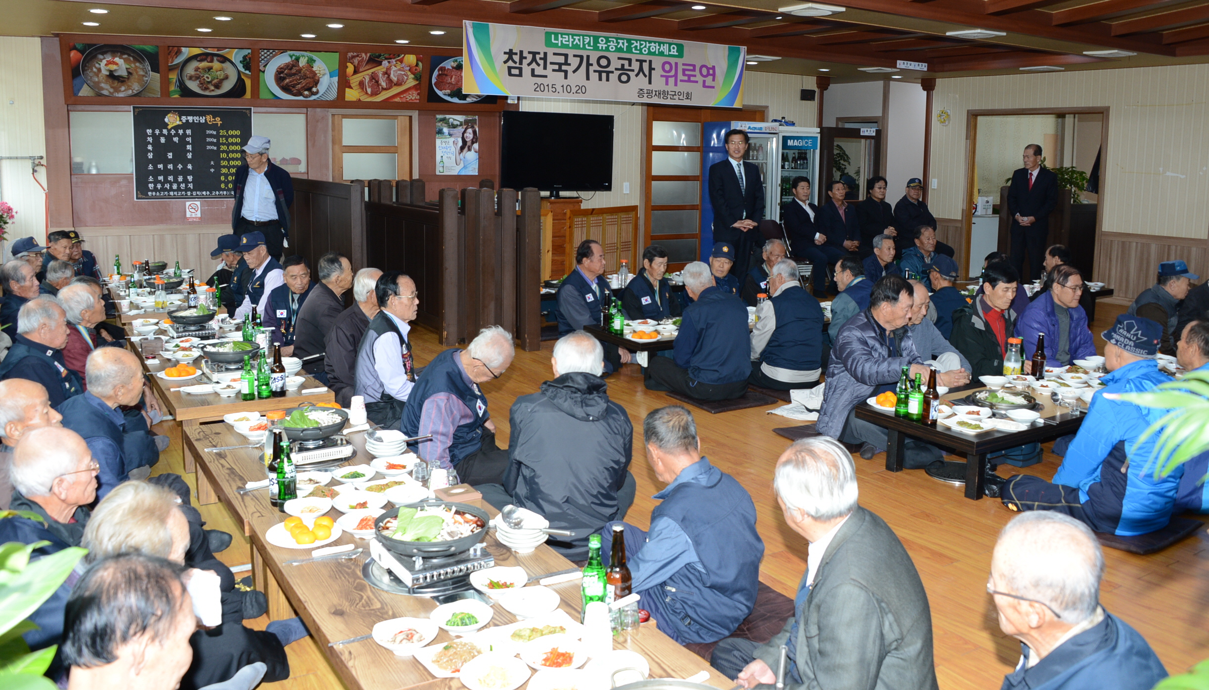 증평재향군인회(회장 육재동) 주관으로 20일 오전 11시 증평군 장뜰시장내 모 식당에서 6.25참전유공자 및 월남참전유공자 130여명과 홍성열군수, 우종한 군의장, 각 보훈단체장 등이 참석한 가운데 위로연을 실시했다. (보도자료실 참조)
