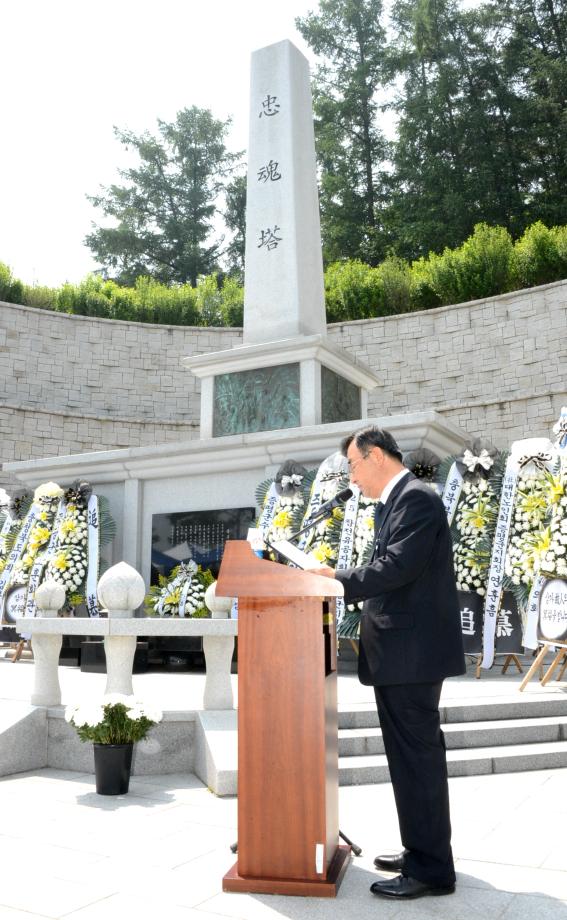 증평군은 6일 제63회 현충일을 맞아 증평읍 내성리 증평보건복지타운 내 충혼탑에서 나라를 위해 몸 바친 순국선열 및 호국영령들을 기리는 추념 행사를 개최했다.(보도자료실 참조)