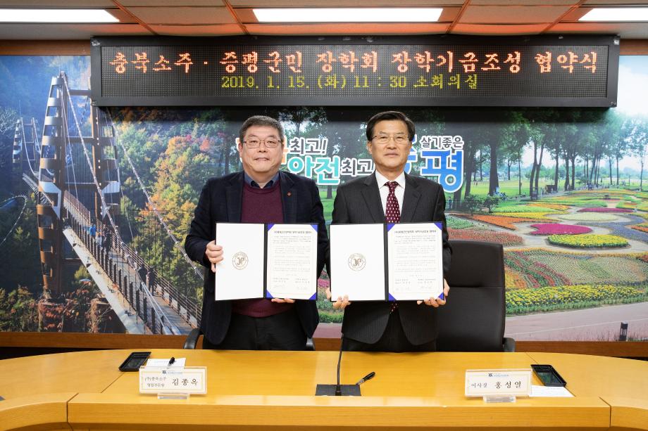 (주)충북소주(대표 이종훈)는 15일 증평군청을 찾아 (재)증평군민장학회(이사장 홍성열 증평군수)에 장학기금 157만6800원을 기탁했다.