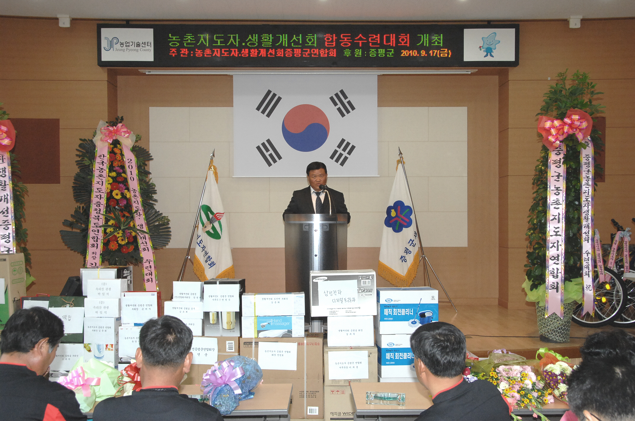 증평군농업기술센터(소장 김동구)는 17일 오전 11시 농업기술센터 별관 문화관 대회의실에서 농촌지도자 및 생활개선회원을 비롯한 관계자 150여명이 참석한 가운데 농촌지도자 및 생활개선회 회원들을 대상으로 합동수련대회를 개최했다.[보도자료실 참조]
