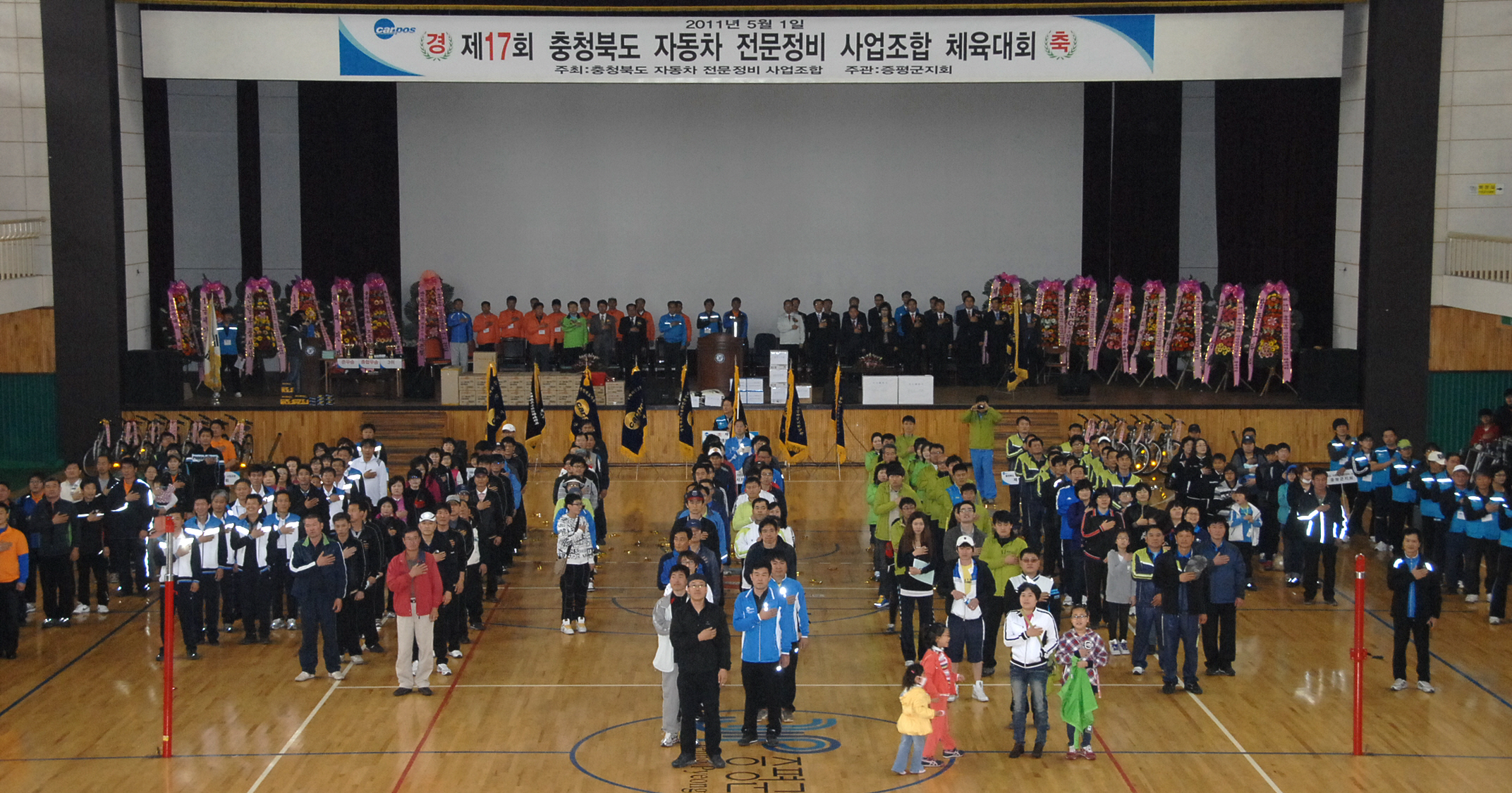 충청북도 자동차전문정비사업조합(이사장 원유찬) 제17회 조합원 가족 체육대회가 5월1일 오전10시 증평 스포츠센터에서에서 홍성열 증평군수, 노영민국회의원, 김재룡 증평군의회의장을 비롯한 기관단체장과 회원 및 가족 300여명이 참석한 가운데 증평지회(지회장 홍상혁)주최로 열렸다.[보도자료실 참조.]