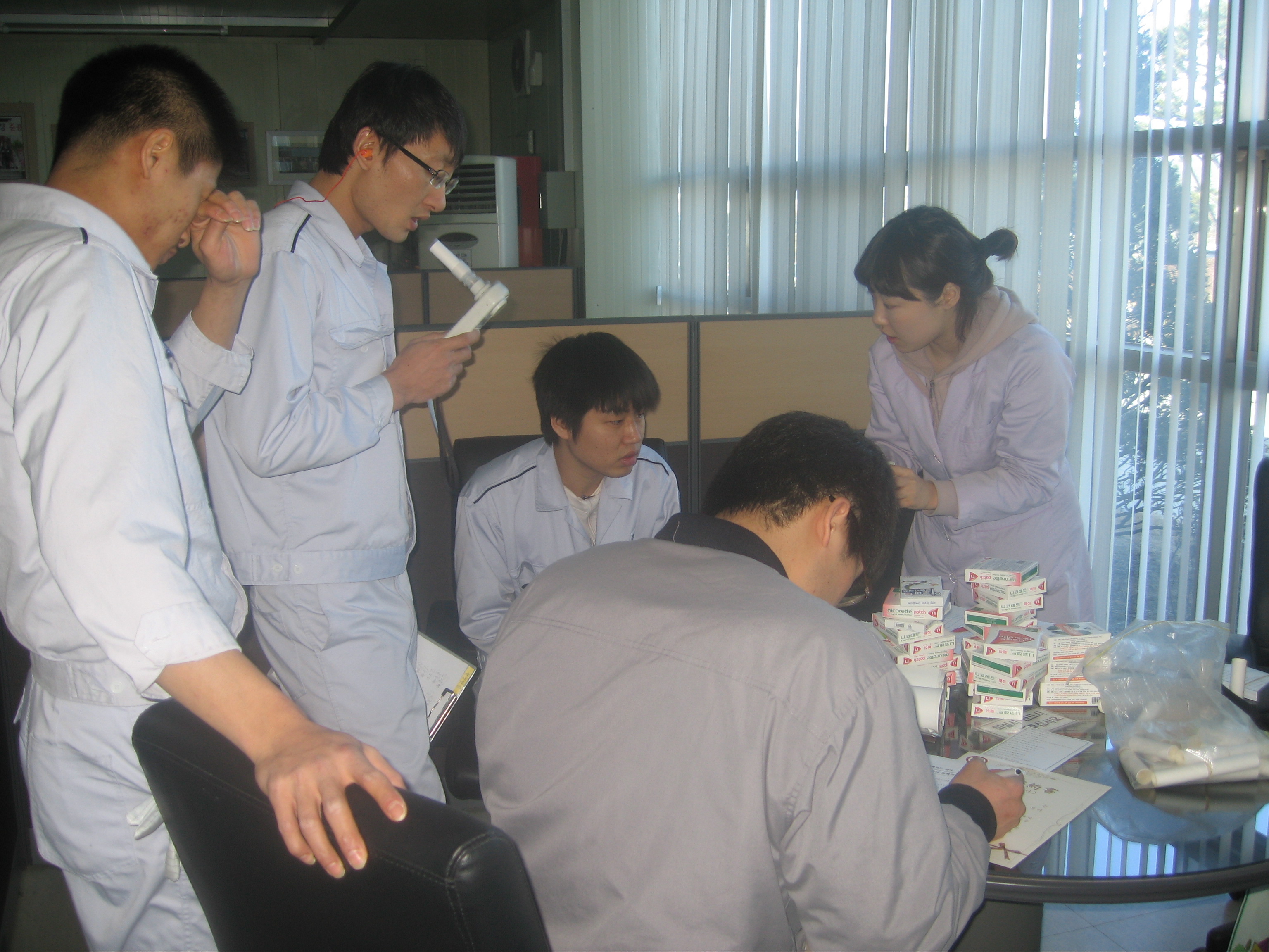 증평군보건소는 2일 보건소 소회의실에서 (주)한국알미늄 대표와 ‘담배없는 건강한 사업장 만들기’ 프로그램 추진을 위한 협약을 체결하고 관련 담당자간의 간담회를 가졌다.[보도자료실 참조]