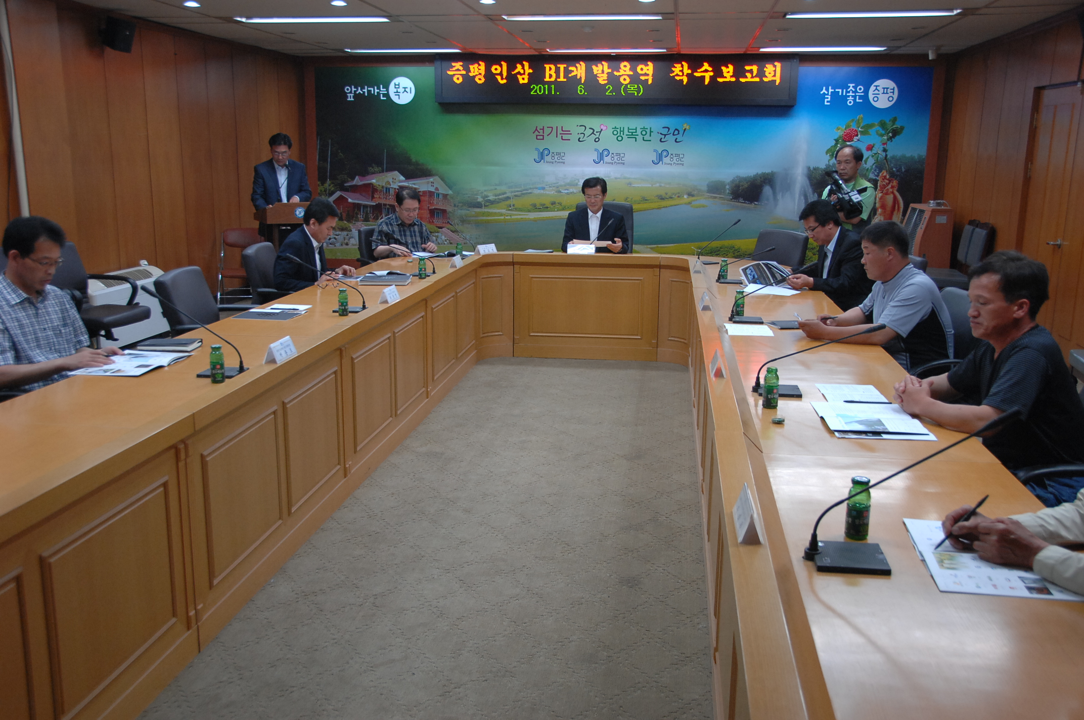 증평군은 2일 오후 3시 군청 소회의실에서 홍성열 증평군수, 증평인삼연구회영농법인 장봉현 대표를 비롯한 관계공무원 등 15명이 참석한 가운데 증평인삼 BI 및 포장재 개발 용역 착수보고회를 열었다.[보도자료실 참조]