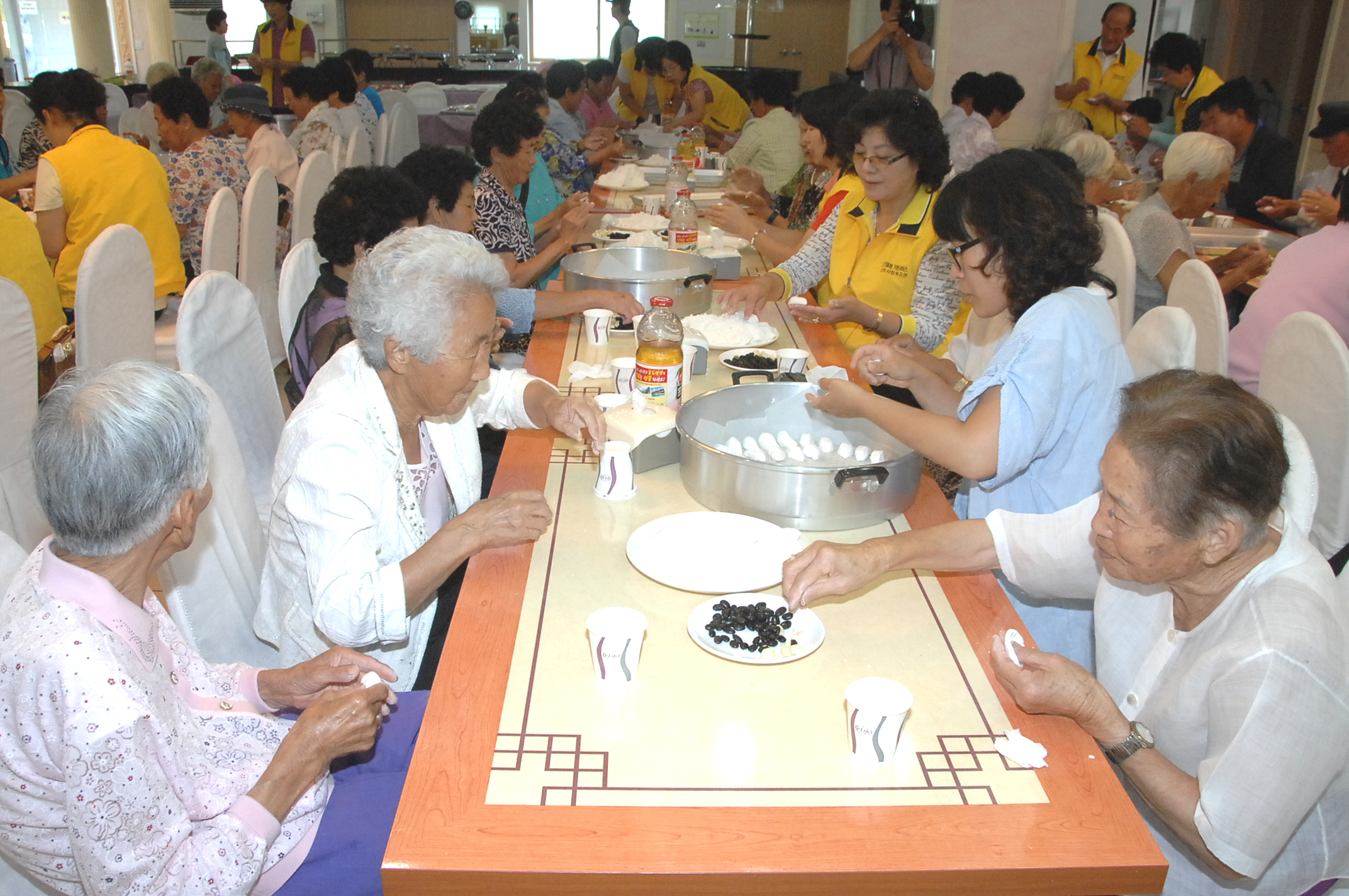 증평 삼보사회복지관이 주관하고 증평장뜰로타리클럽(회장 주기영)이 후원하는 홀로어르신 점심, 송편 나누기 행사가 6일 오전 11시 증평 신궁전웨딩홀에서 열렸다. [보도자료실 참조]