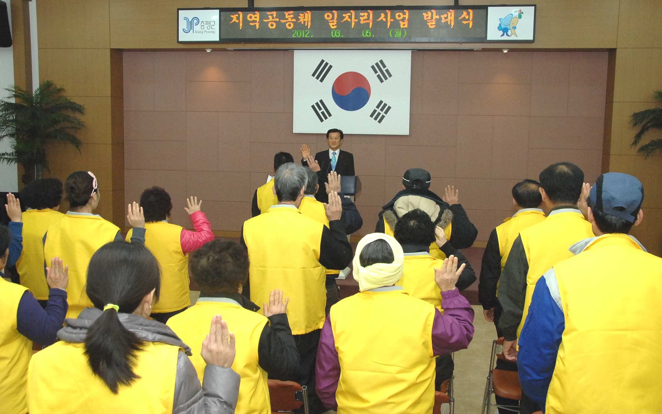 증평군은 5일 오전 9시 증평군청 대회의실에서 홍성열 군수, 지역공동체 일자리사업 선정자 및 관계공무원 등 30여명이 참석한 가운데 ‘2012 상반기 지역공동체 일자리사업’ 발대식을 개최했다. [보도자료실 참조]