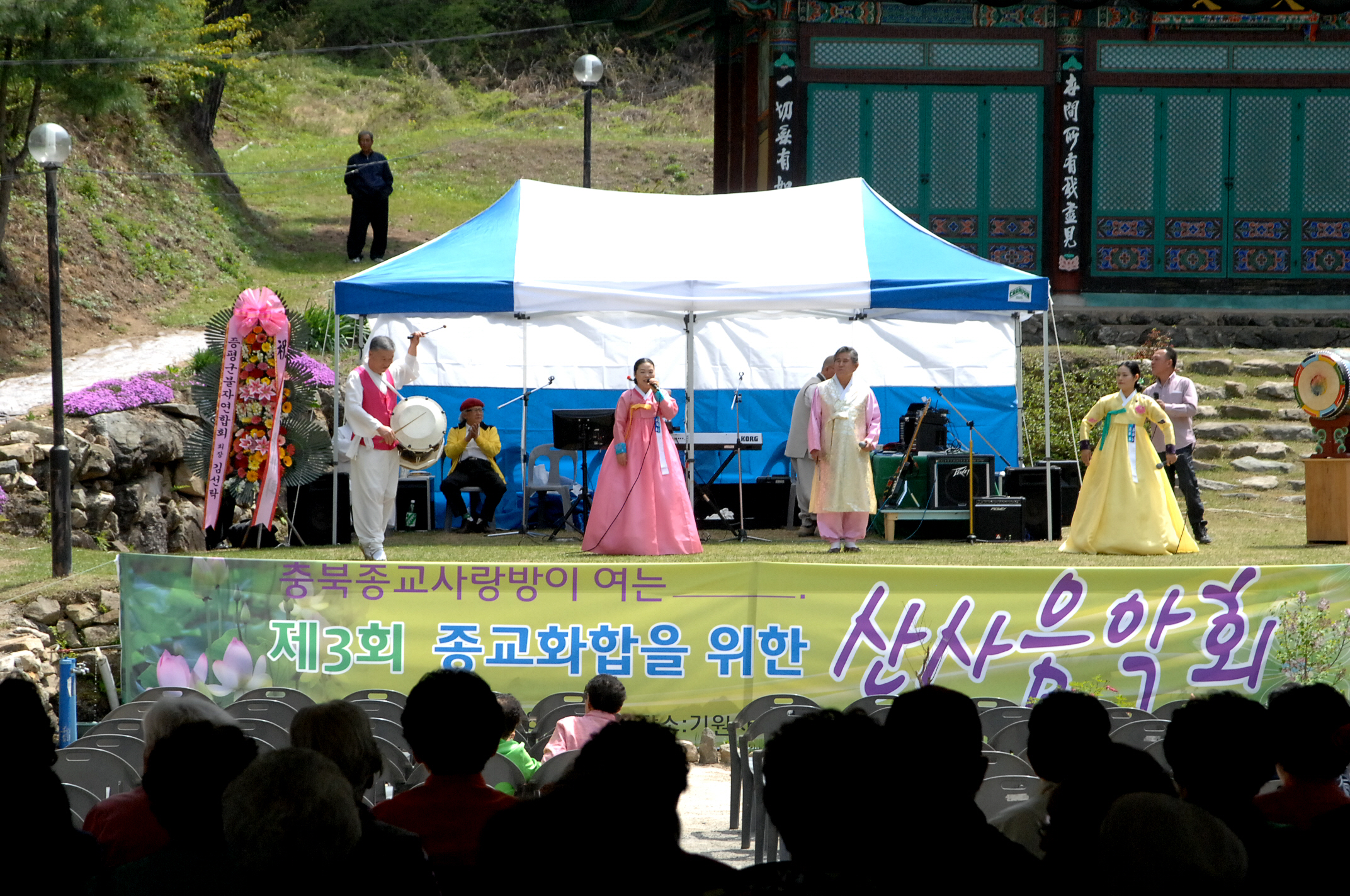 충북종교인사랑방(방주 곽동철 충주문화동성당 주임신부)이 주최하는 제3회 종교화합을 위한 "효" 산사음악회가 28일 오전 11시 증평읍 남하리 기원사(주지스님 호산스님)에서 홍성열군수, 김재룡군의장, 김봉회도의원 등 기관단체장과 지역 어르신 등 약 300여명이 참석한 가운데 열렸다.