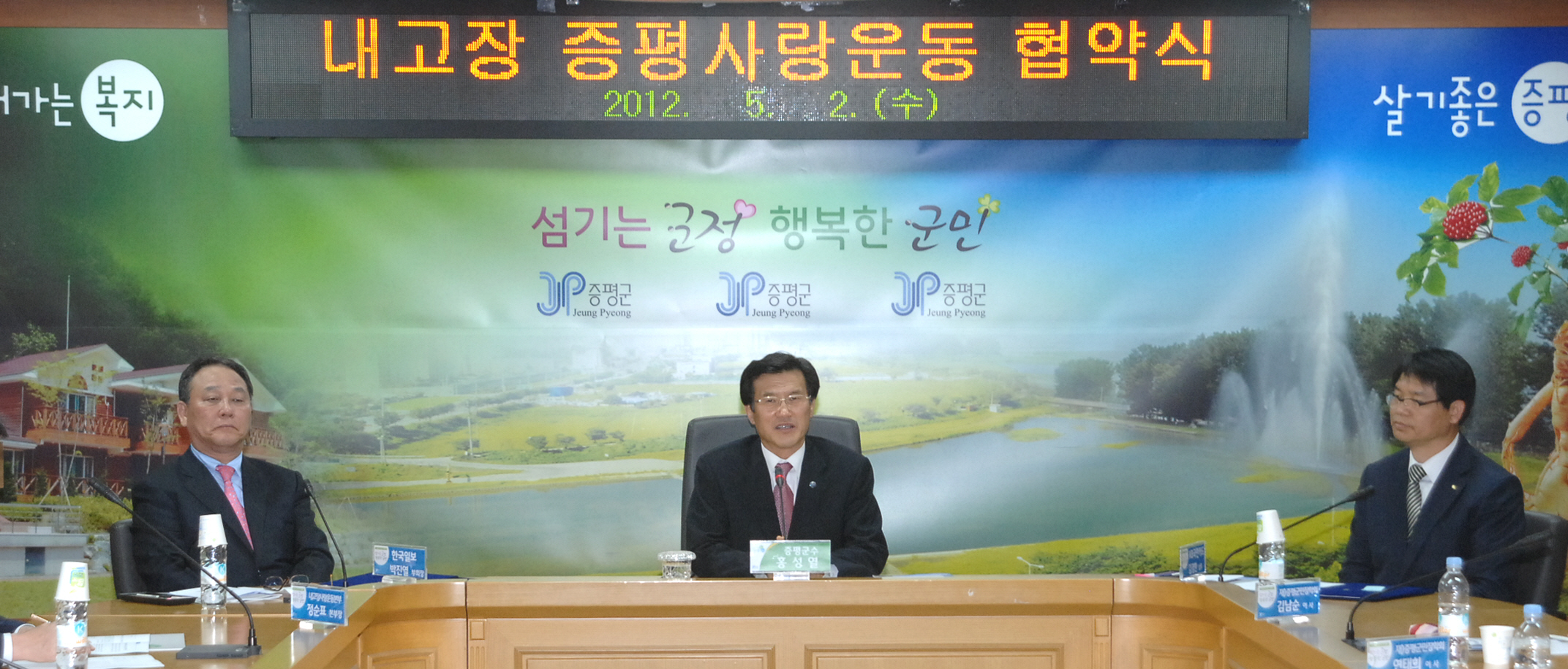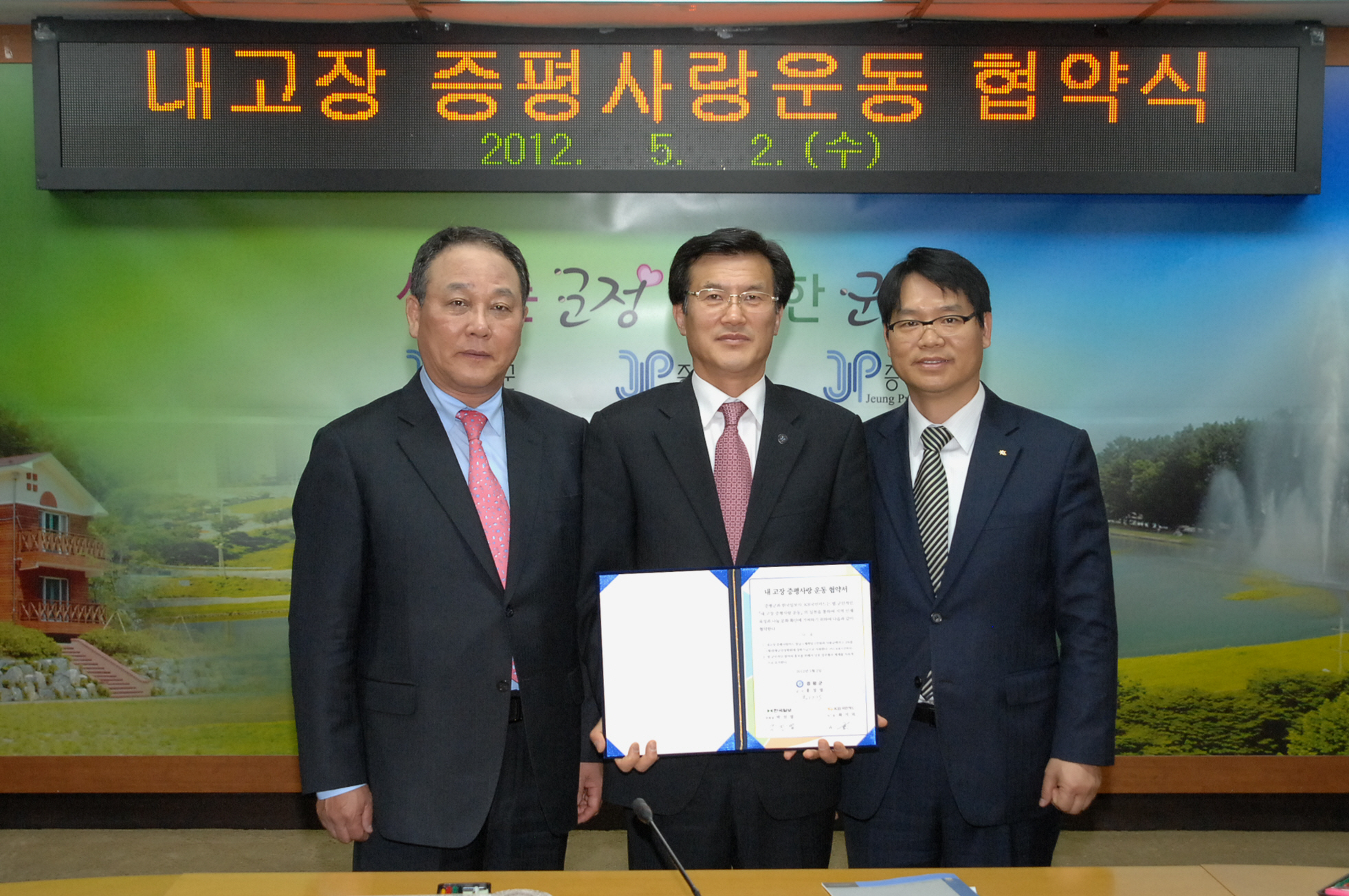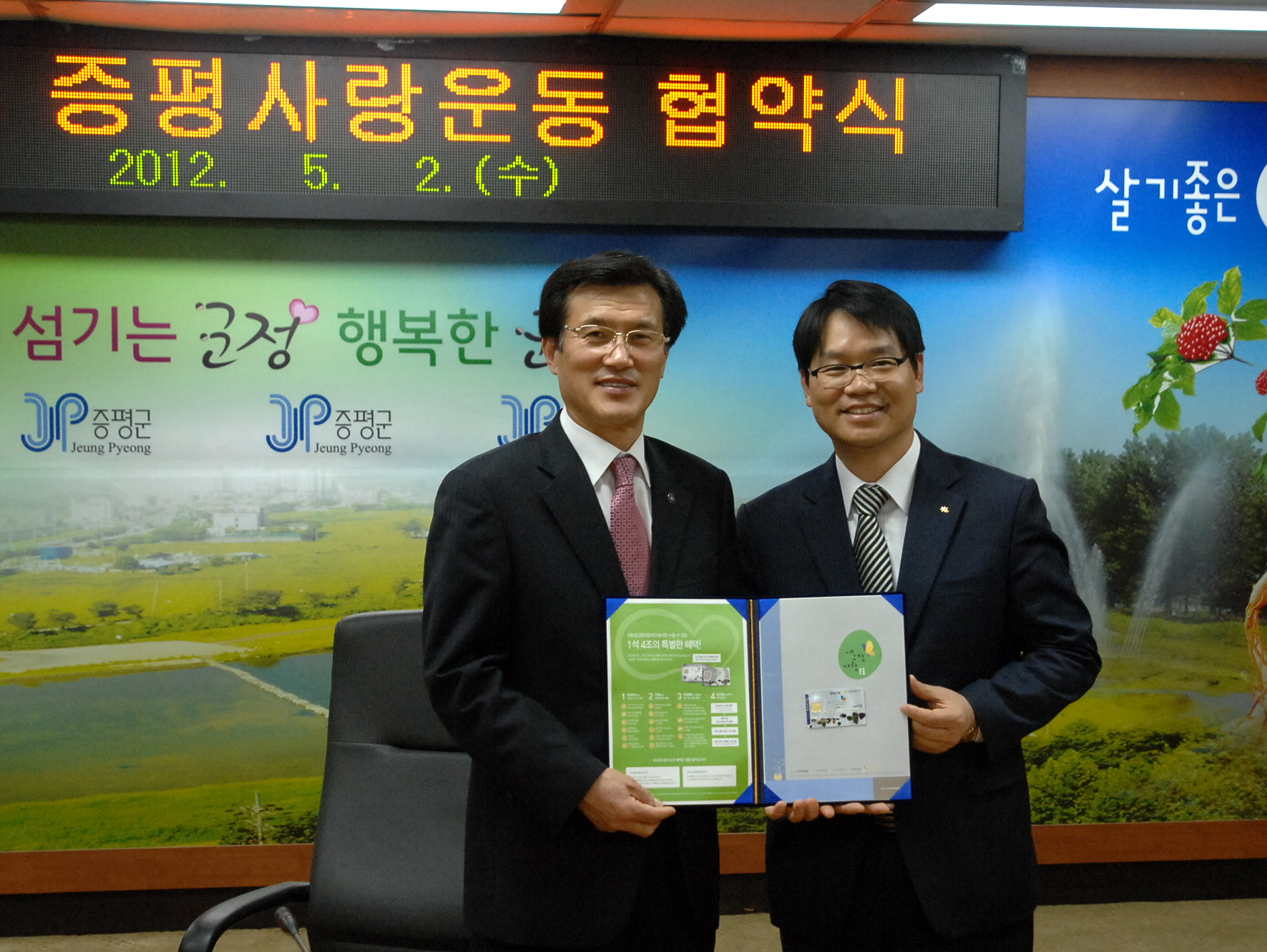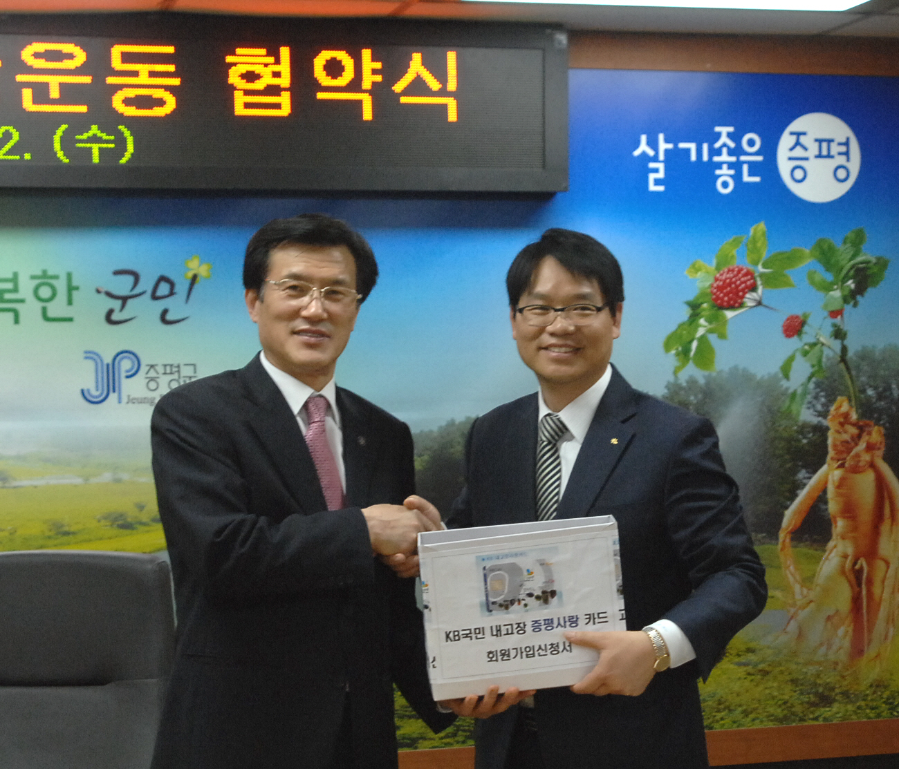 증평군은 2일 오후 2시 군청 소회의실에서 KB국민카드, 한국일보, 증평군민장학회(이사장 홍성열) 관계자 등이 참석한 가운데 지역사랑 카드발급 및 사용을 통해 장학금을 적립하는 내 고장 증평사랑 운동 협약을 체결했다