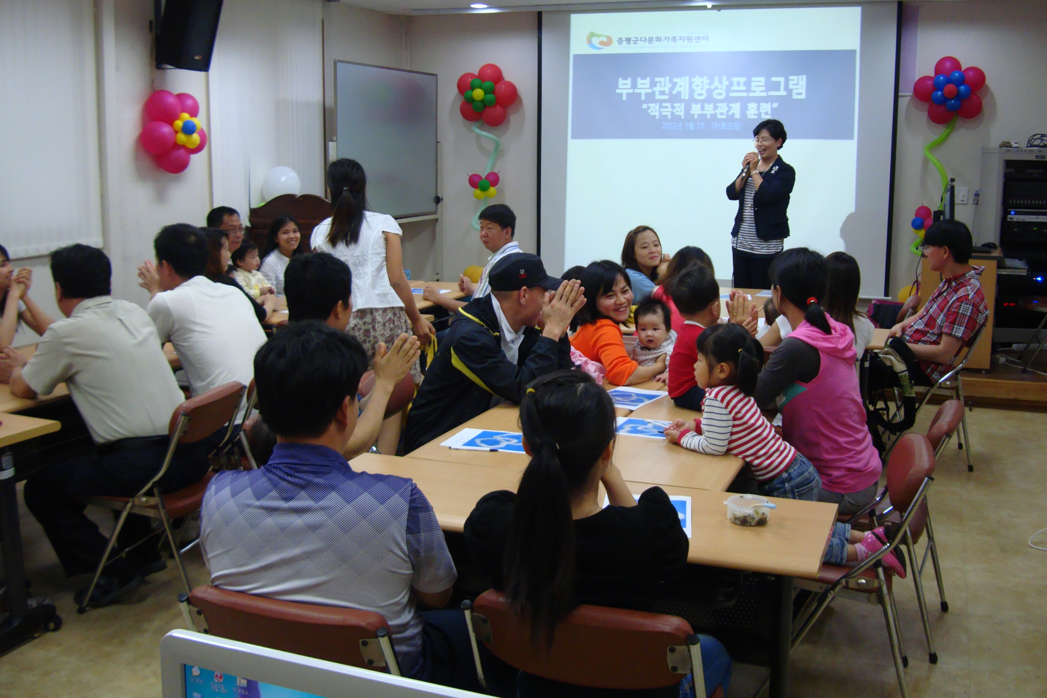 증평군 다문화가족지원센터에서는 다문화 가족의 행복한 결혼생활을 돕기 위해 지난 19일과 26일 2회에 걸쳐 부부관계 향상 프로그램을 실시했다. [보도자료실 참조]