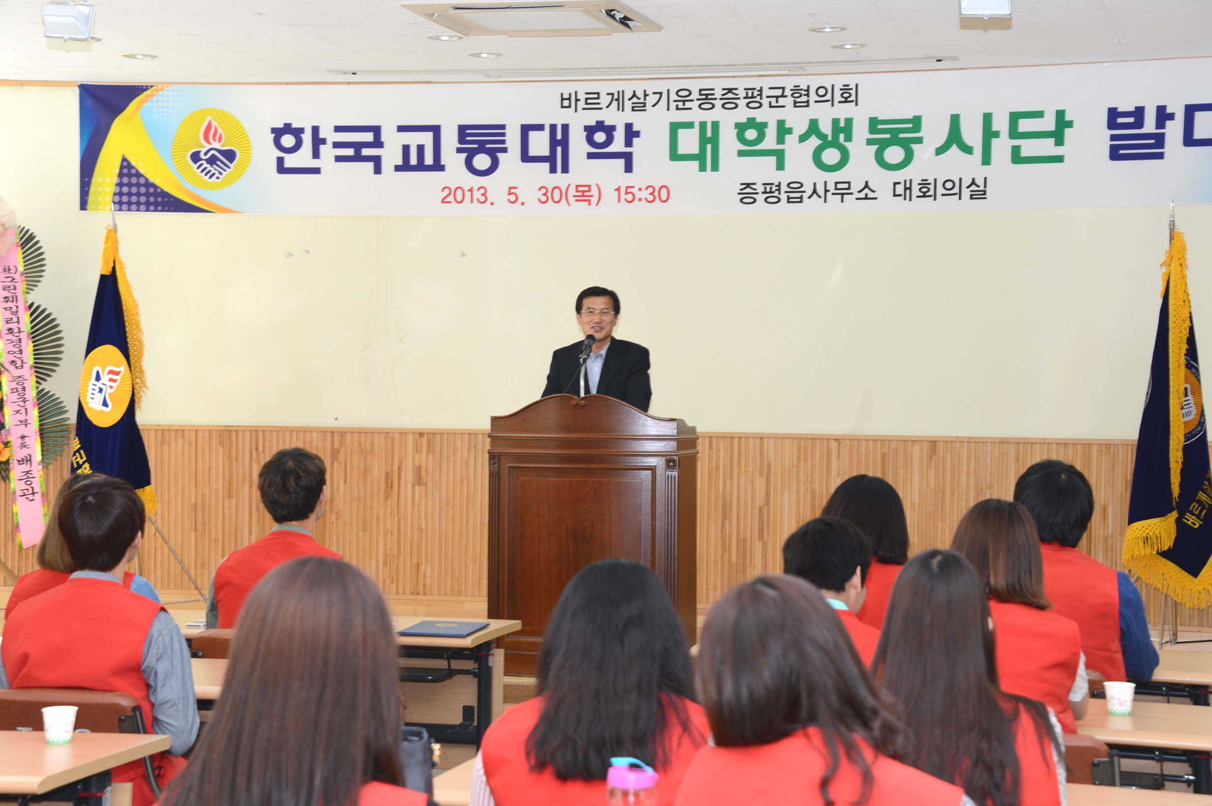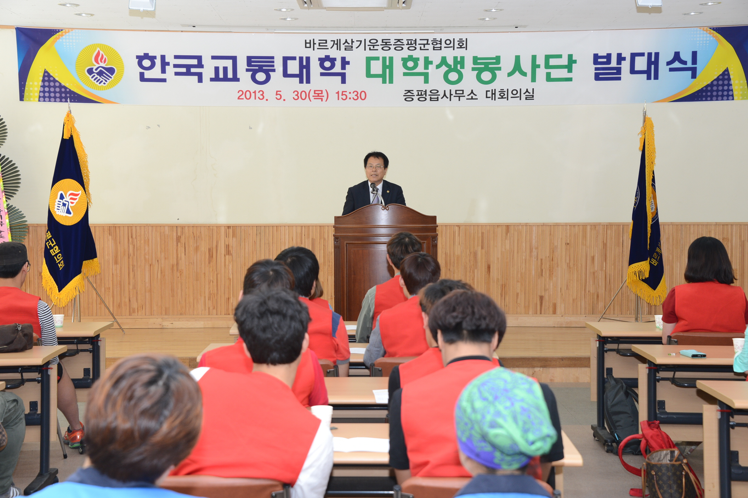 바르게살기운동증평군협의회(회장 이상욱)는 30일 오후 3시30분 증평읍사무소 회의실에서 한국교통대학교 증평캠퍼스 재학생 40명으로 구성된 ‘바르게살기 한국교통대학교 증평군 대학생봉사단’ 발대식을 개최했다. [보도자료실 참조]
