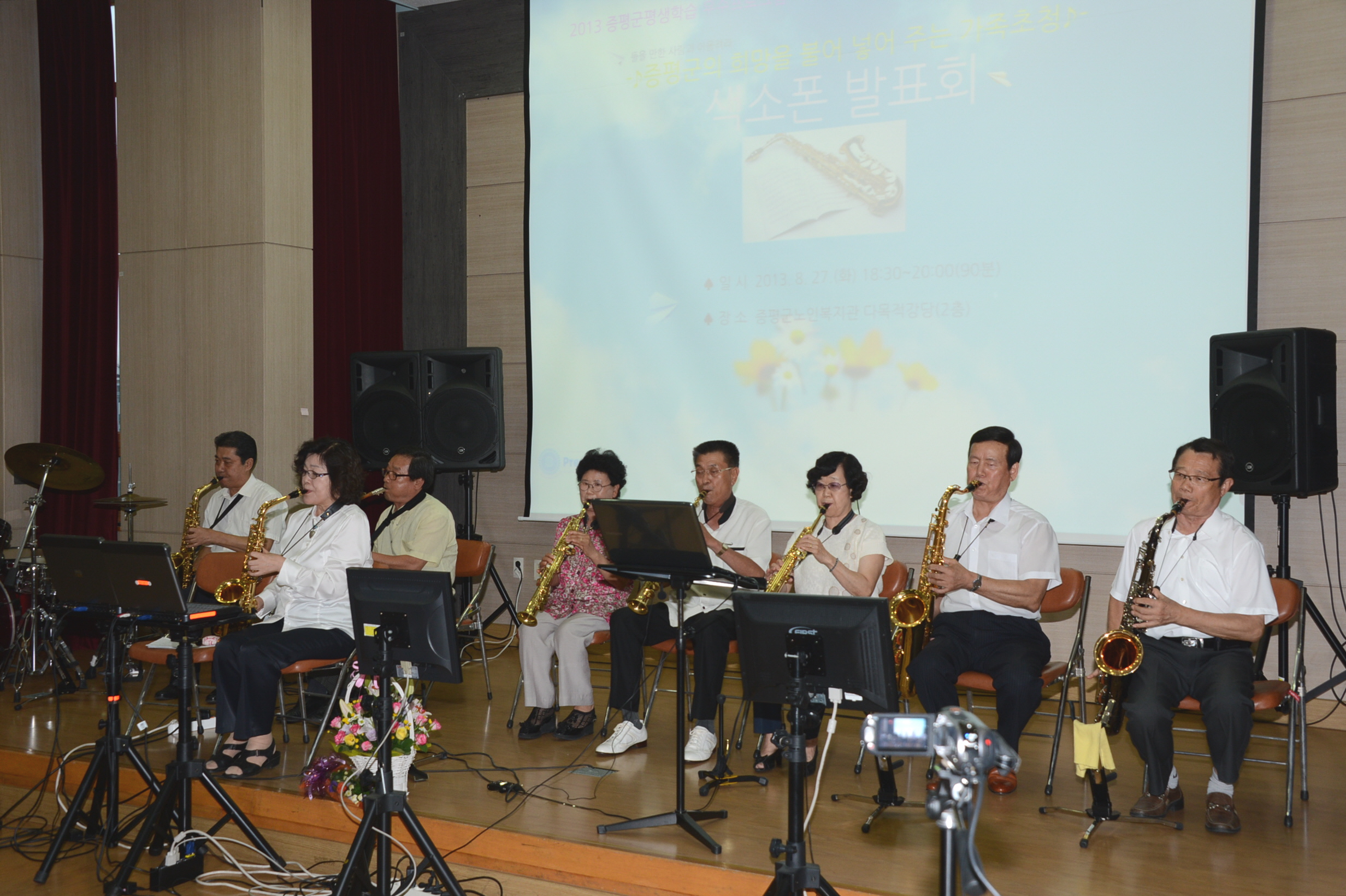 증평군의 2013년도 평생학습 우수 프로그램에 선정된(재)증평복지재단의 색소폰 교육 수료생 발표회가 오는 27일 오후 6시 30분 증평군 노인복지관 대강당에서 열렸다. [8월23일 보도자료 참조]