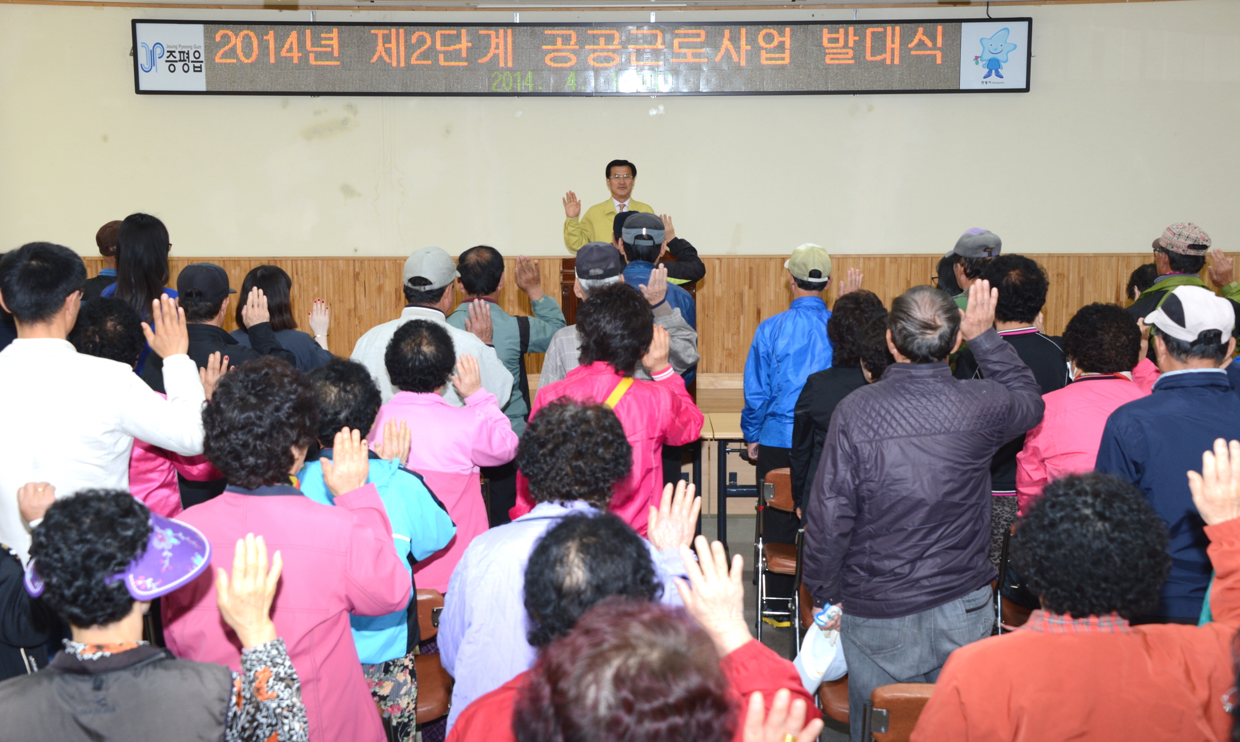 증평군은 1일 증평읍사무소 회의실에서 2014년 제2단계 공공근로 사업 대상자 65명과 관계 공무원 등 75여명이 참석한 가운데 ‘제2단계 공공근로 사업발대식’을 가졌다. [보도자료실 참조]