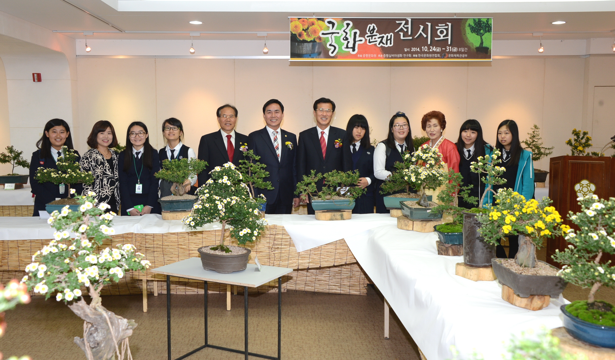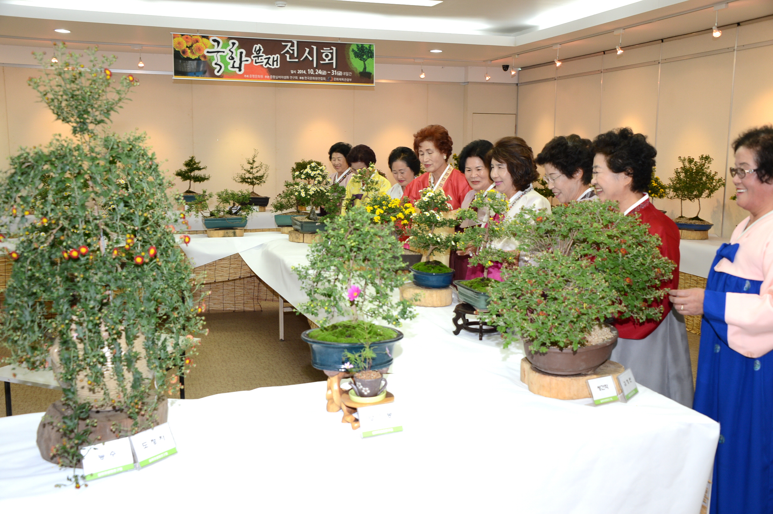 이번 전시회는 실버야생화연구회 회원 24명이 1년여 동안 정성들여 키운 분재 작품으로 여러 가지 형태의 모양과 형상을 하고 있으며, 다채로운 색상의 백조, 백봉, 나비선유, 나비동산, 목부작, 심이류 둥 분재국 200여점과 대국 50여점 등 총250여점의 가을향기 물씬 풍기는 아름다운 자태의 국화가 선보인다.