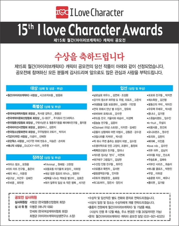 증평군 공공저작물 독서광 김득신 캐릭터, 월간 아이러브캐릭터 공모전 한국여성캐릭터협회장상 수상
