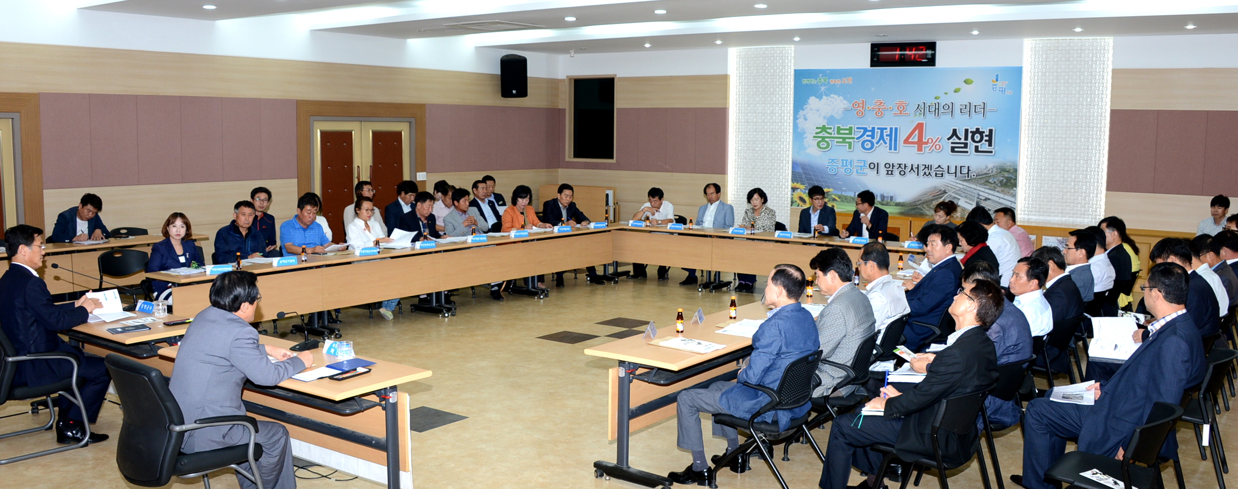 증평군은 23일 오후 1시30분 군청 대회의실에서 홍성열 증평군수, 최건성 문화원장을 비롯한 관련 기관·단체장과 관계 공무원 등 50여명이 참석한 가운데‘증평 인삼골축제’의 차질 없는 준비를 위한 축제 추진상황 보고회를 개최했다.(보도자료실 참조))