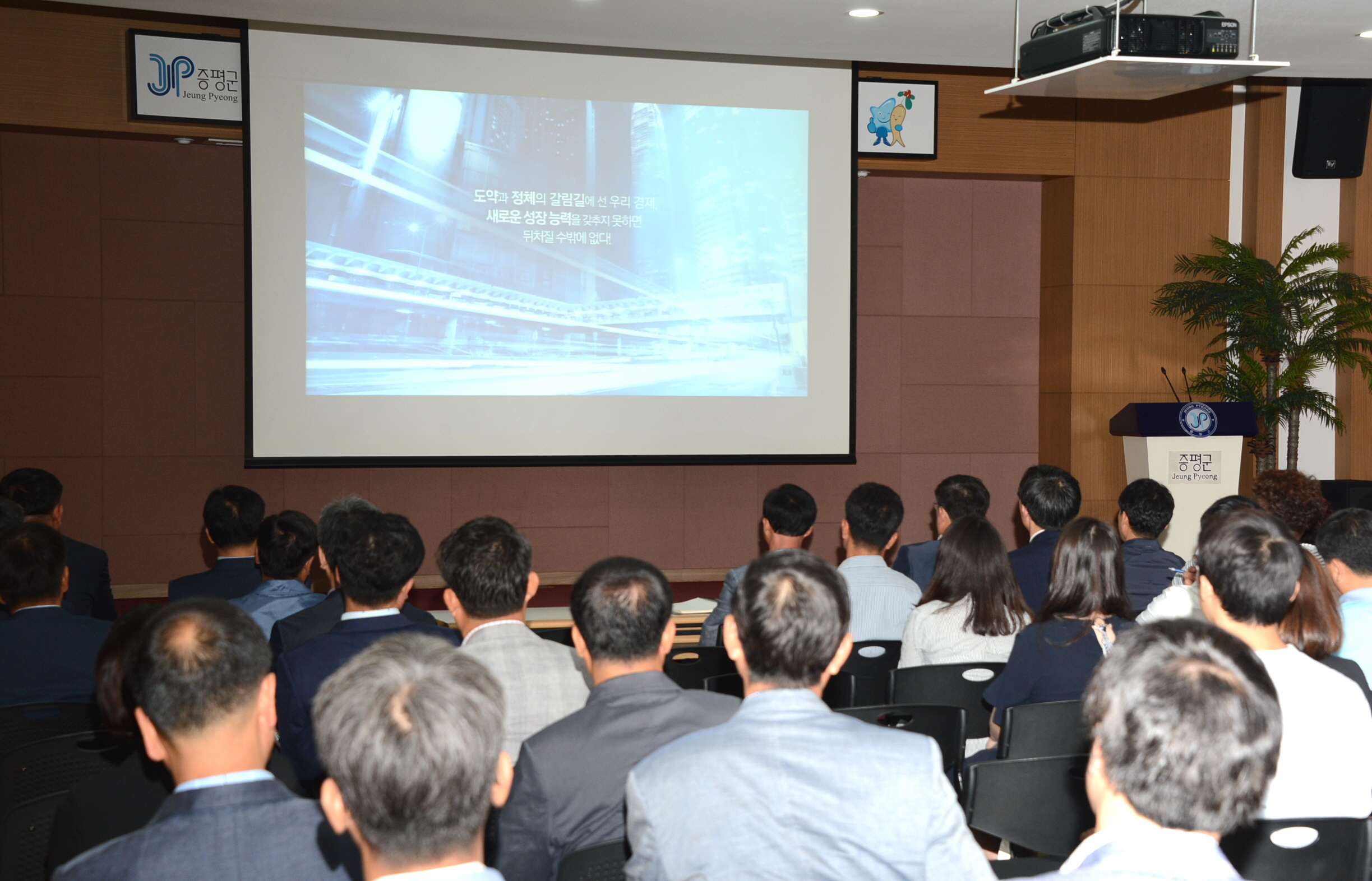 증평군은 4일 군청 2층 대회의실에서 공무원 200명을 대상으로‘규제개혁 마인드 향상을 위한 직무교육’을 실시했다.(보도자료실 참조)