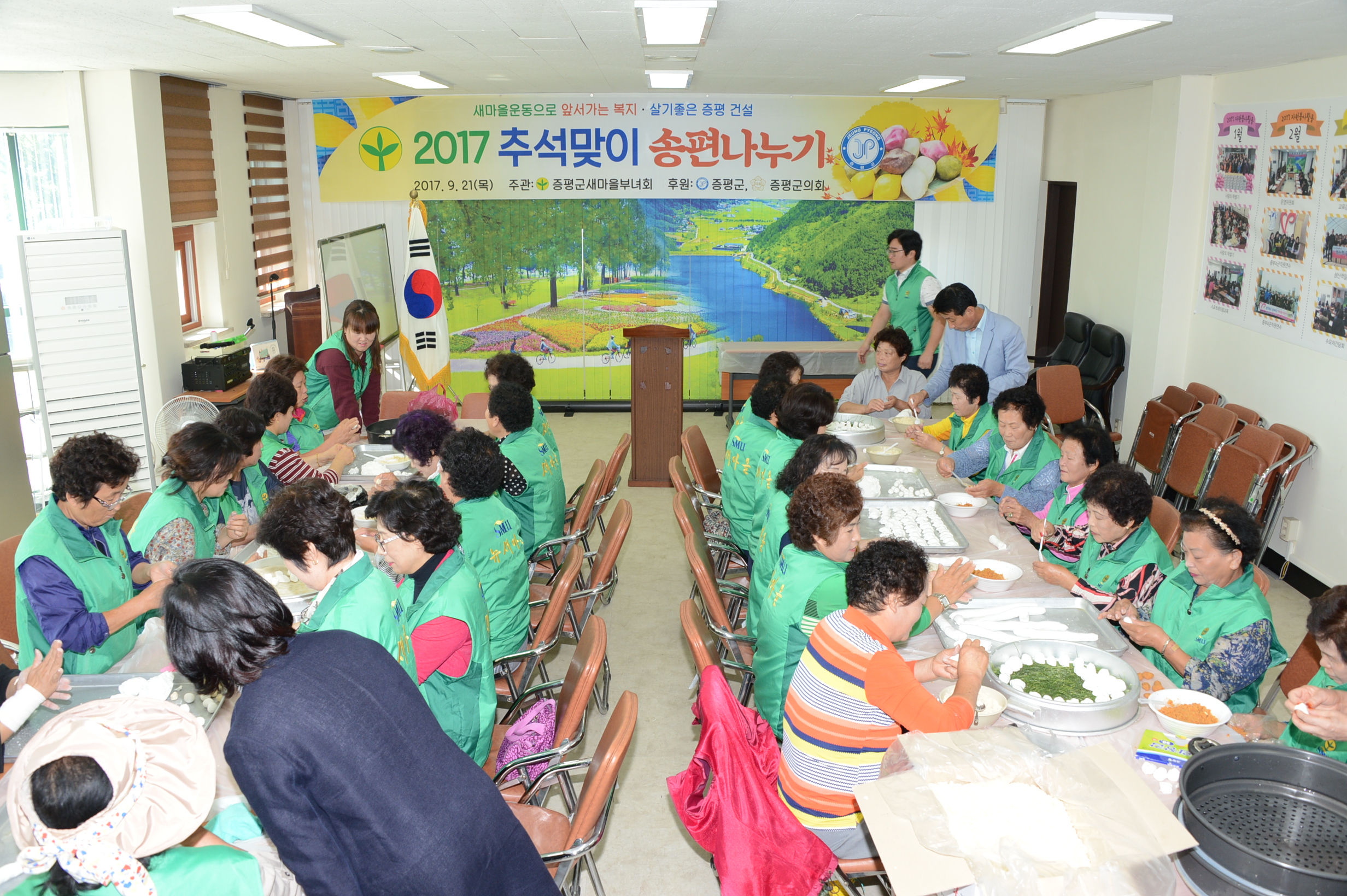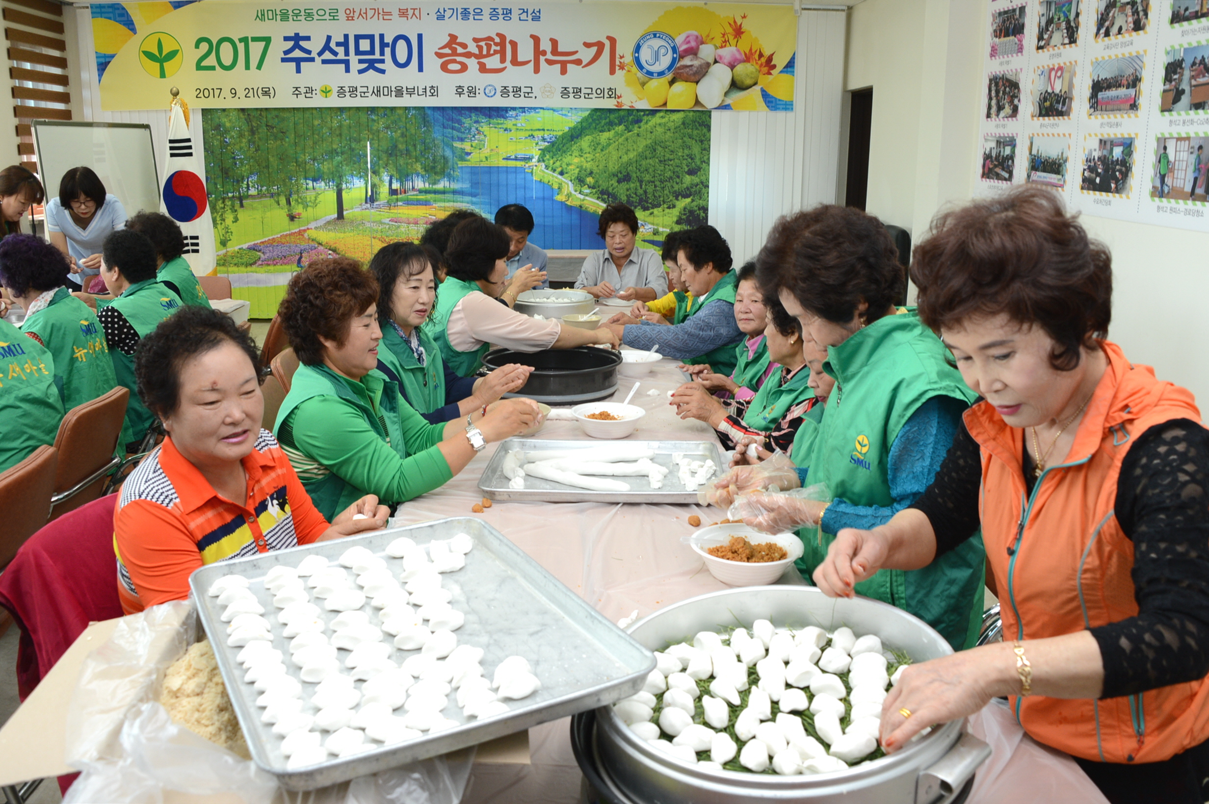 증평군새마을부녀회(회장 최연옥) 부녀회원과 협의회원 80명은 21일 새마을회 2층 회의실에서 ‘사랑의 송편나누기’ 행사를 실시했다.(보도자료실 참조)